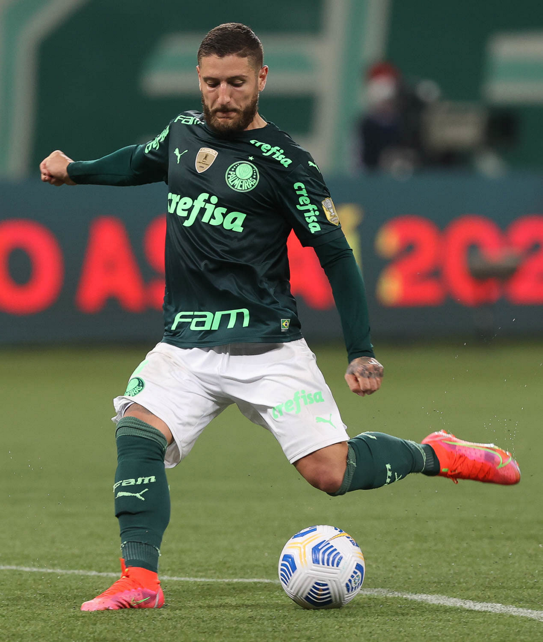 O jogador Matías Viña, da SE Palmeiras, em jogo contra a equipe do Grêmio FBPA, durante partida válida pela décima rodada, do Campeonato Brasileiro, Série A, na arena Allianz Parque. (Foto: Cesar Greco)