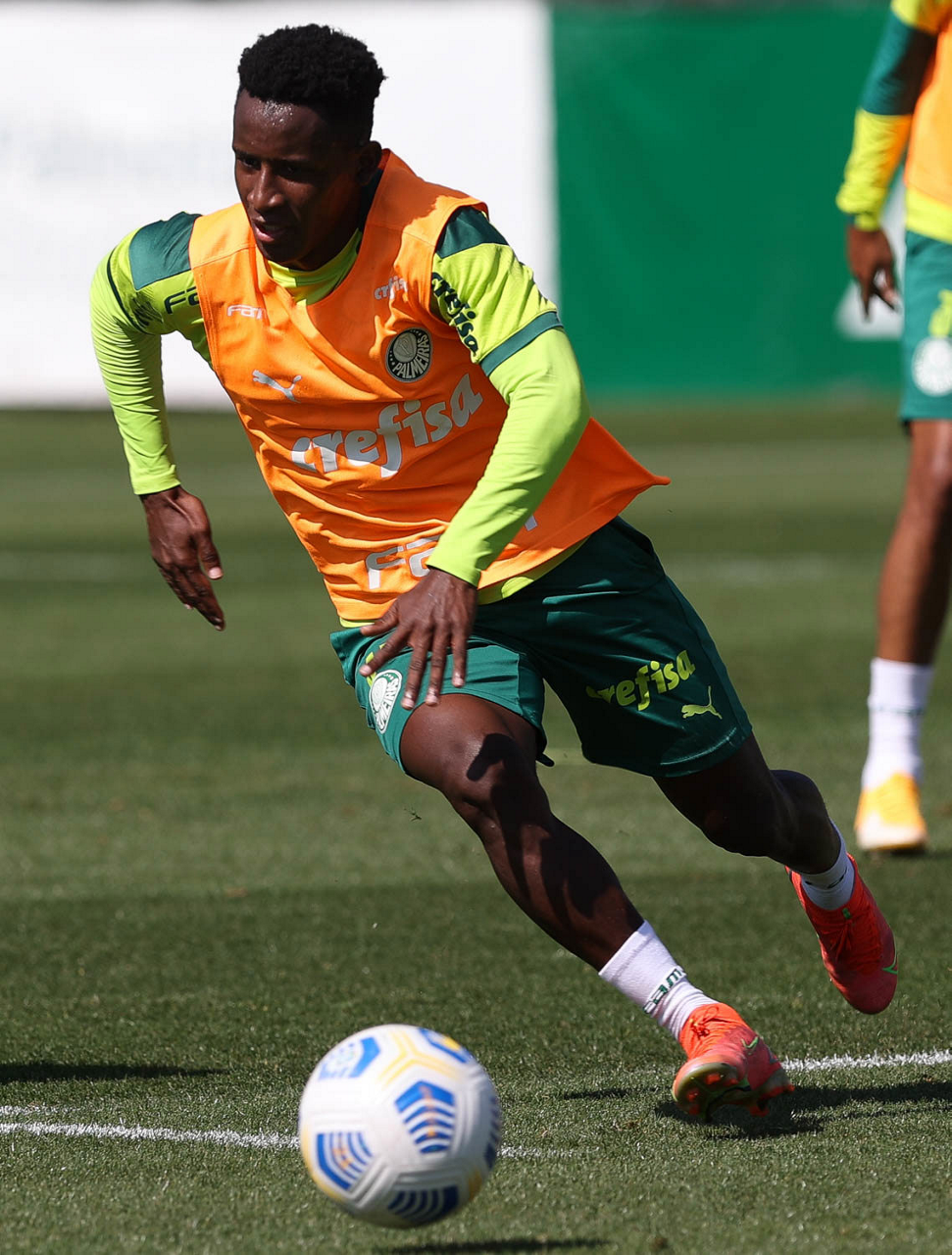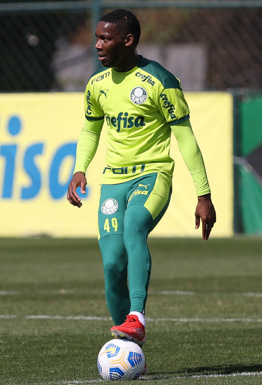 O jogador Angulo, da SE Palmeiras, durante treinamento, na Academia de Futebol. (Foto: Cesar Greco)