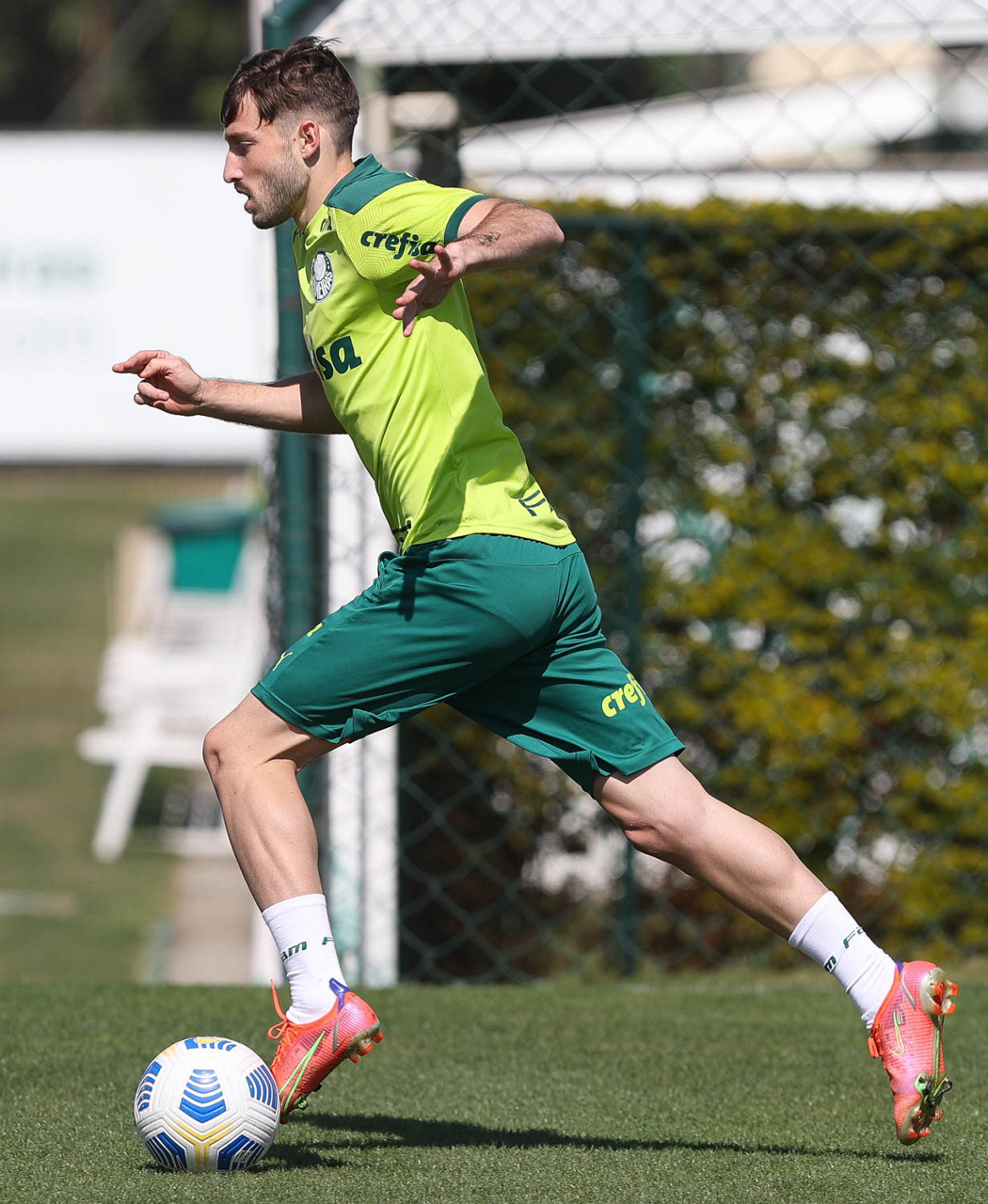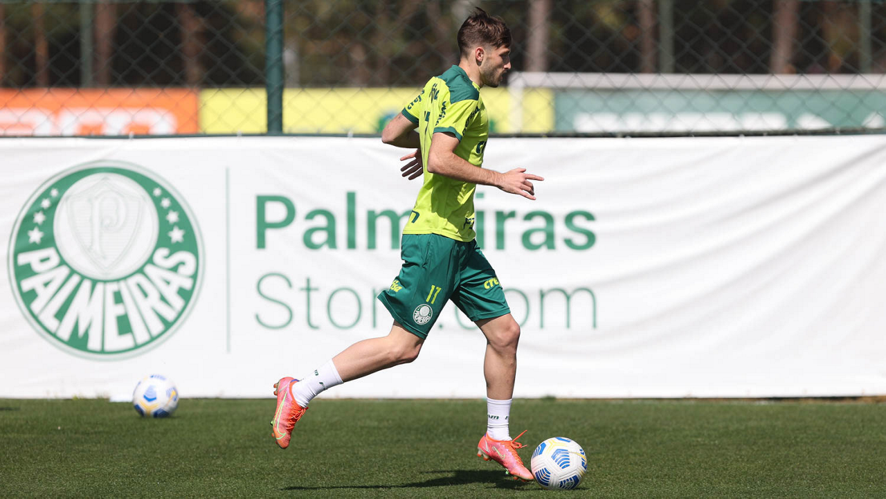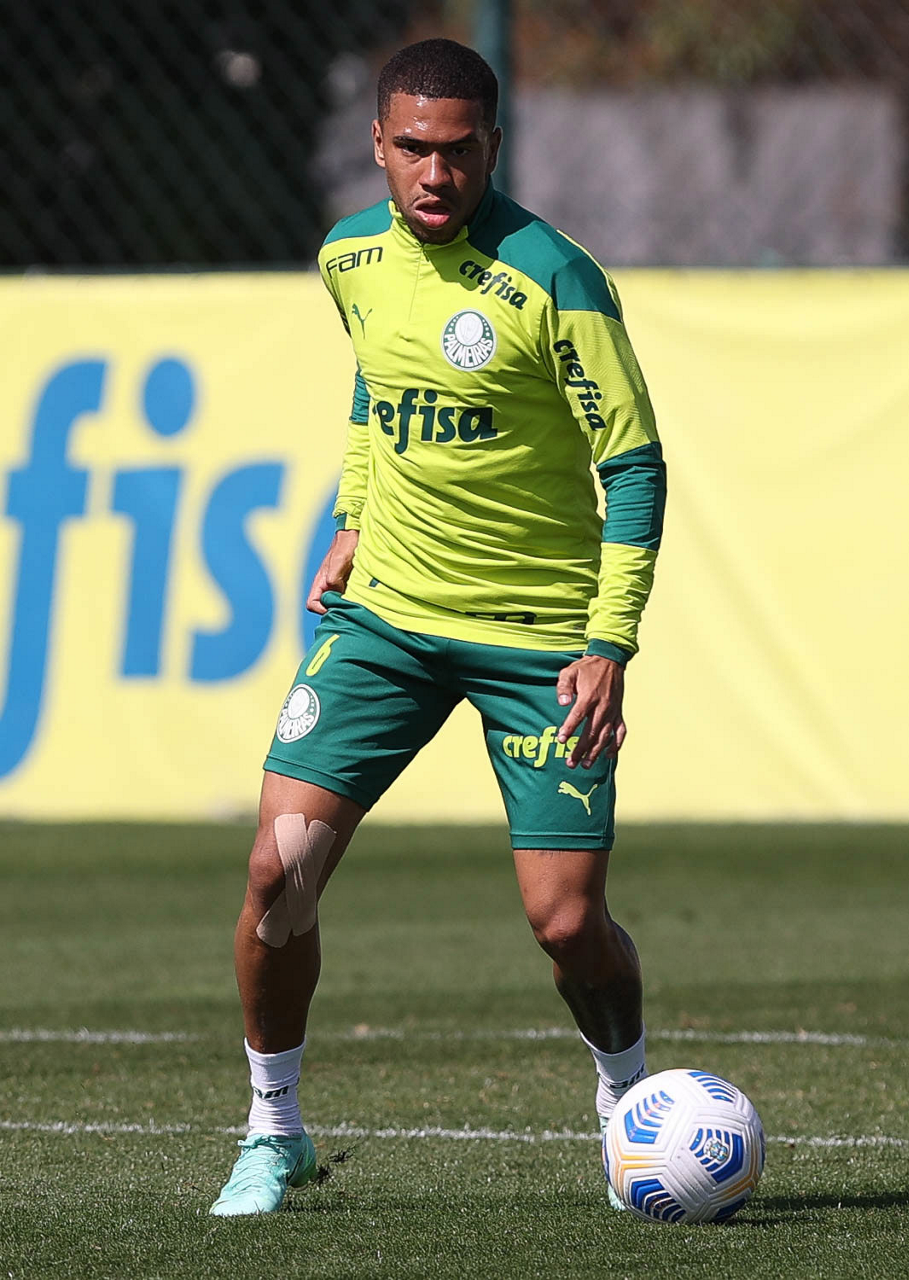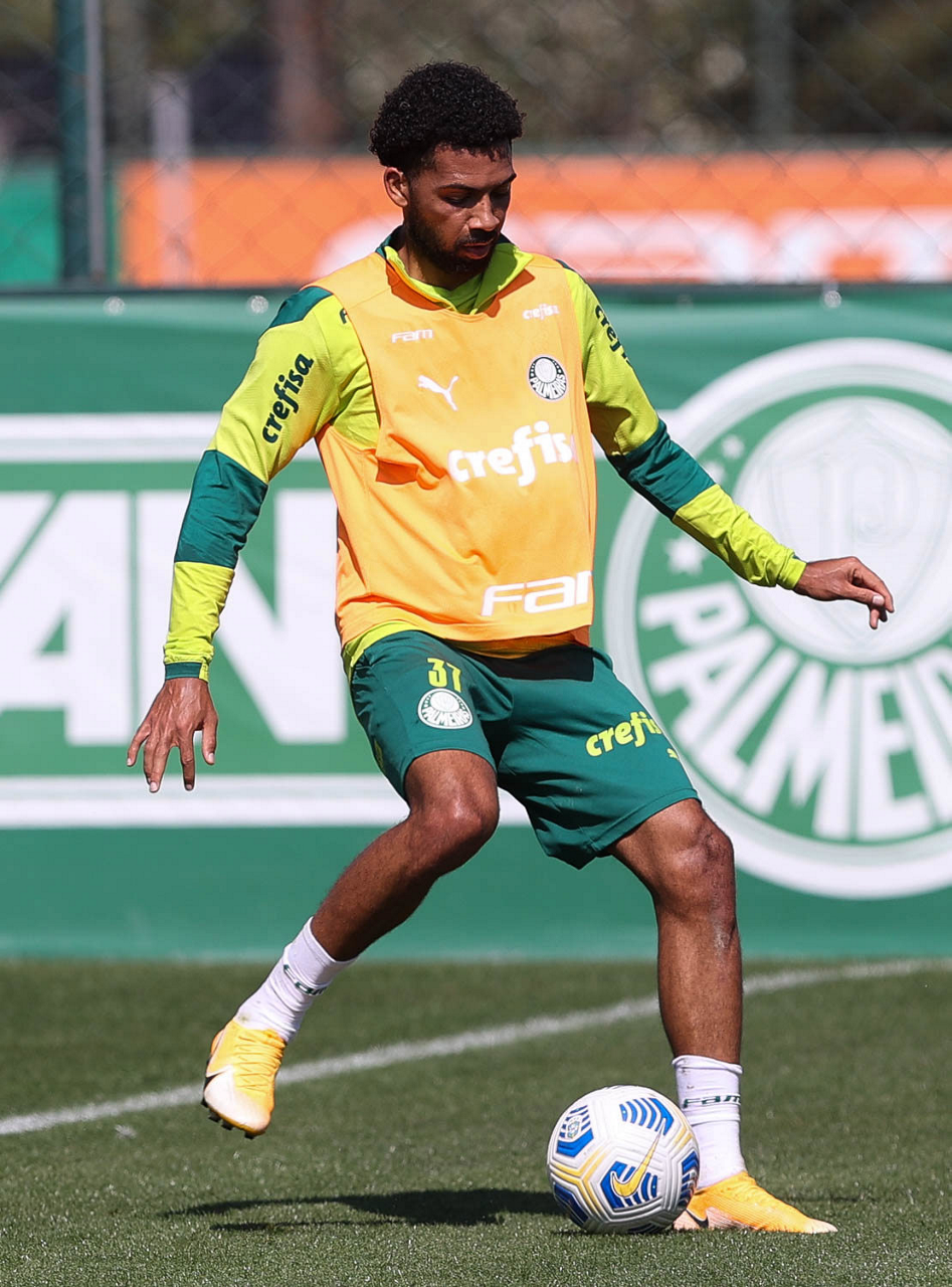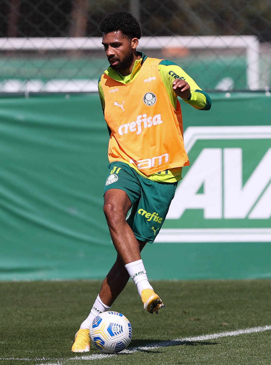 O jogador Matheus Fernandes, da SE Palmeiras, durante treinamento, na Academia de Futebol. (Foto: Cesar Greco)