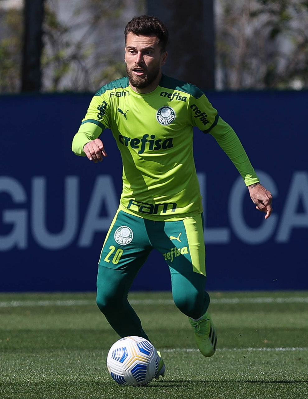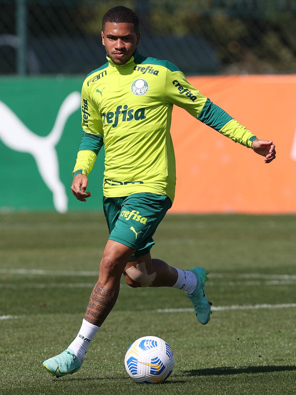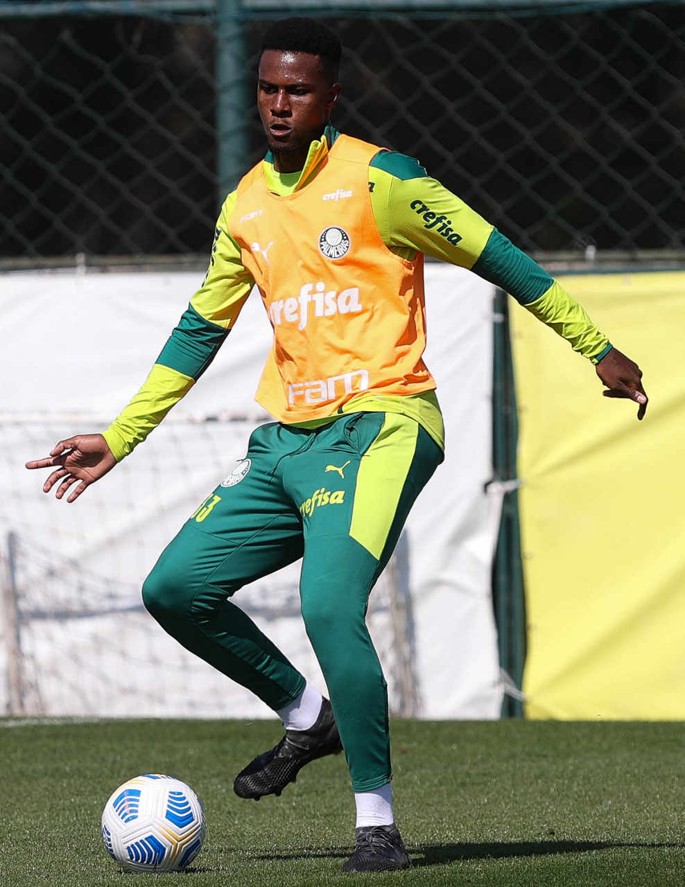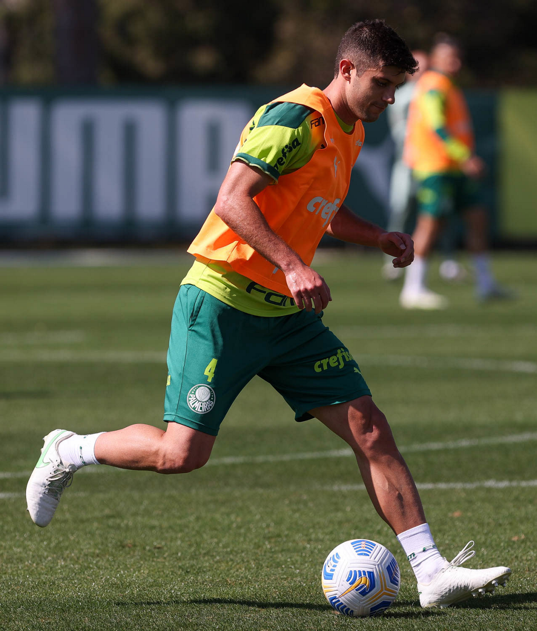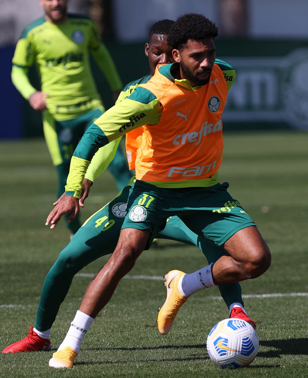O jogador Matheus Fernandes, da SE Palmeiras, durante treinamento, na Academia de Futebol. (Foto: Cesar Greco)