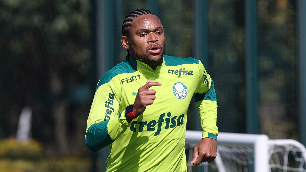 O jogador Luan, da SE Palmeiras, durante treinamento, na Academia de Futebol. (Foto: Cesar Greco)