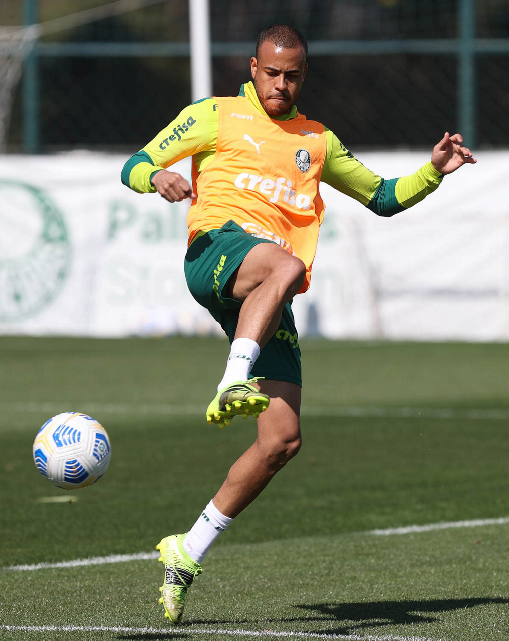 O jogador Mayke, da SE Palmeiras, durante treinamento, na Academia de Futebol. (Foto: Cesar Greco)