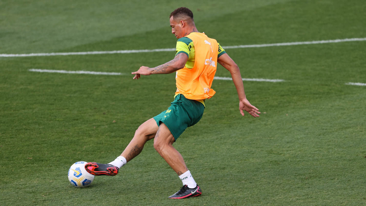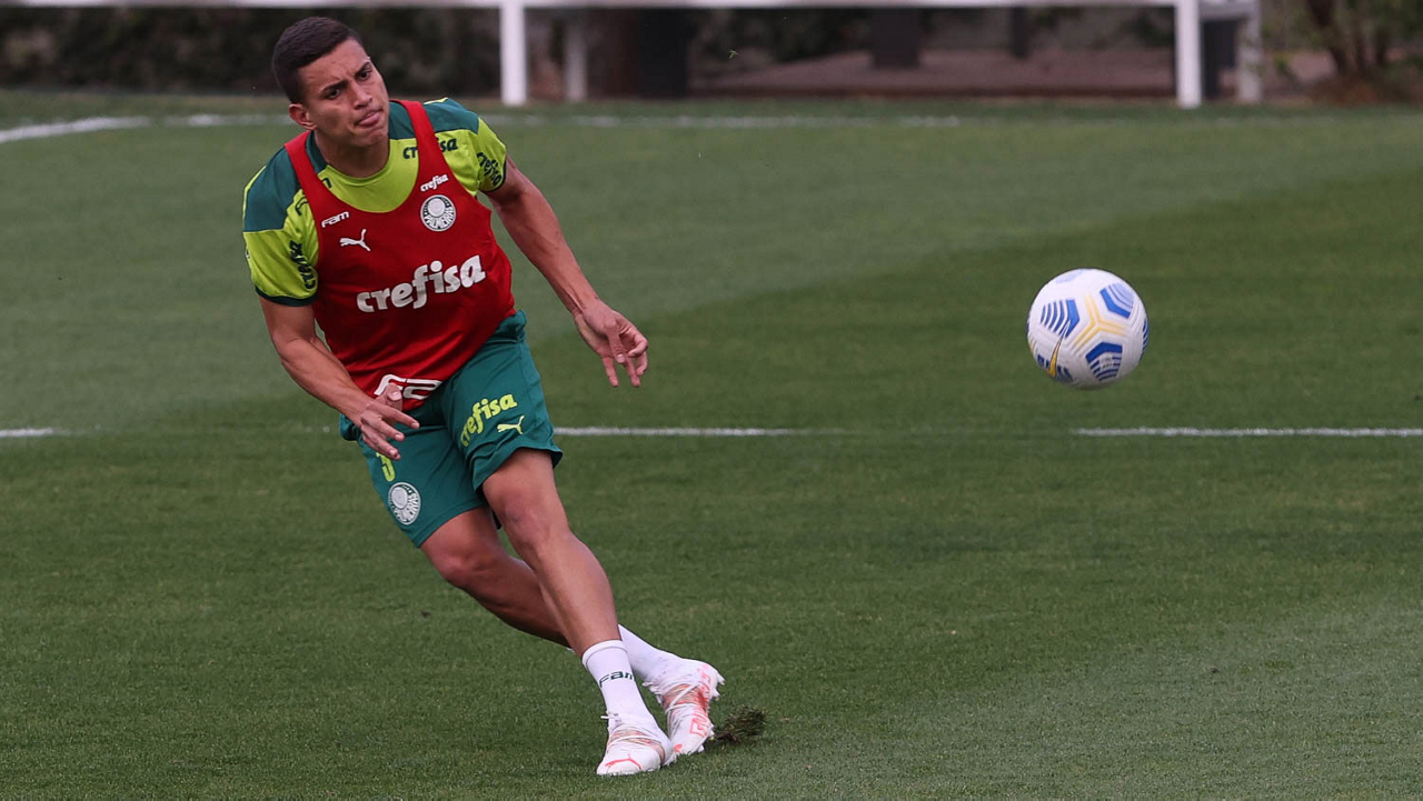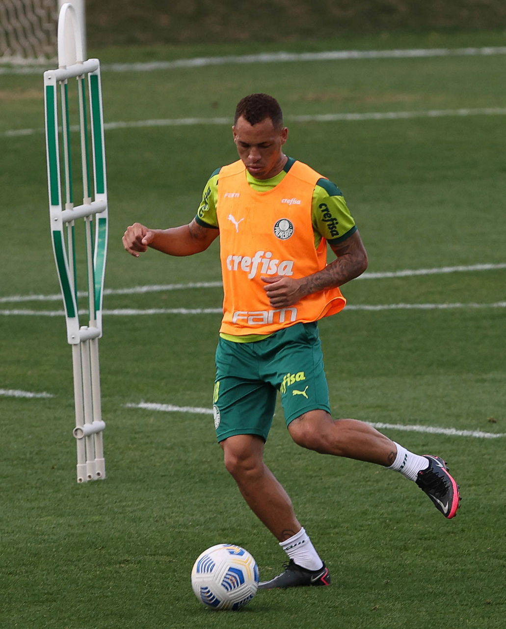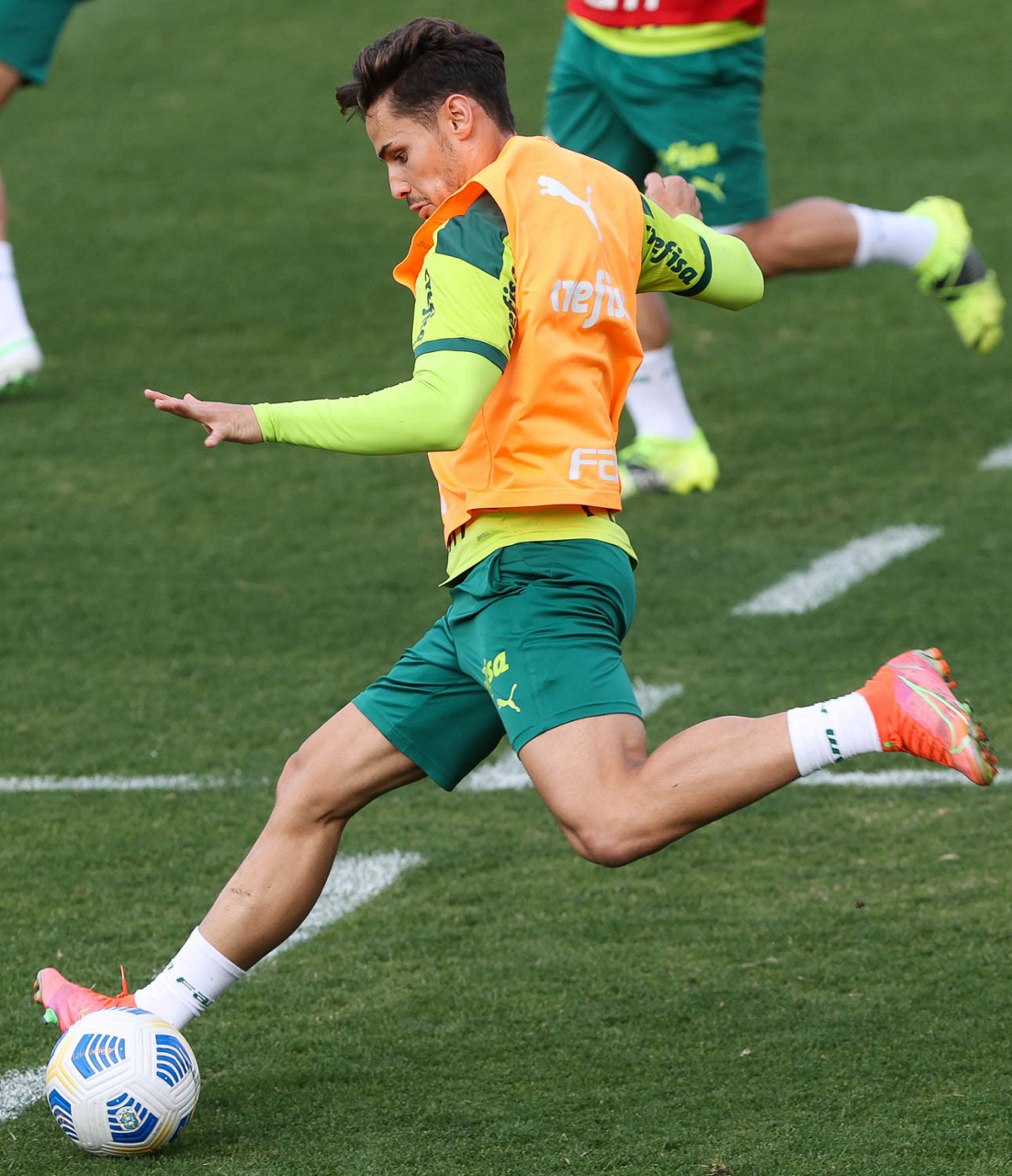 O jogador Raphael Veiga, da SE Palmeiras, durante treinamento, na Academia de Futebol. (Foto: Cesar Greco)