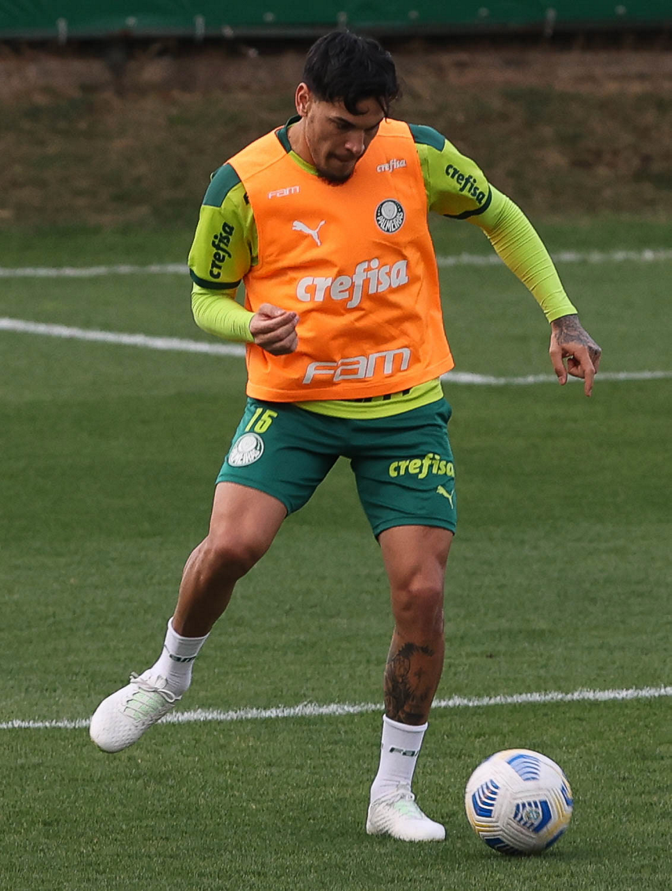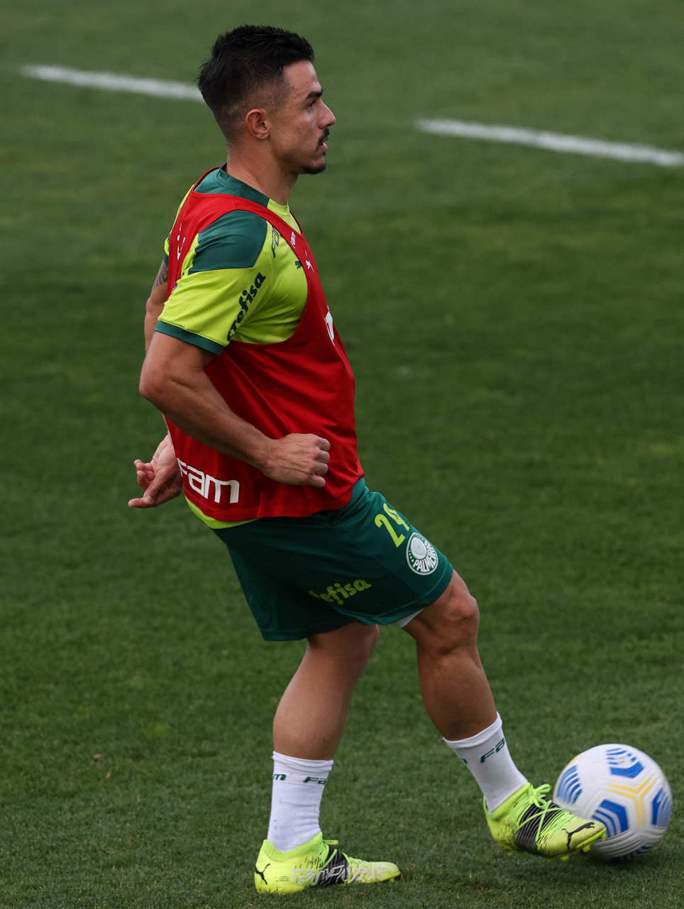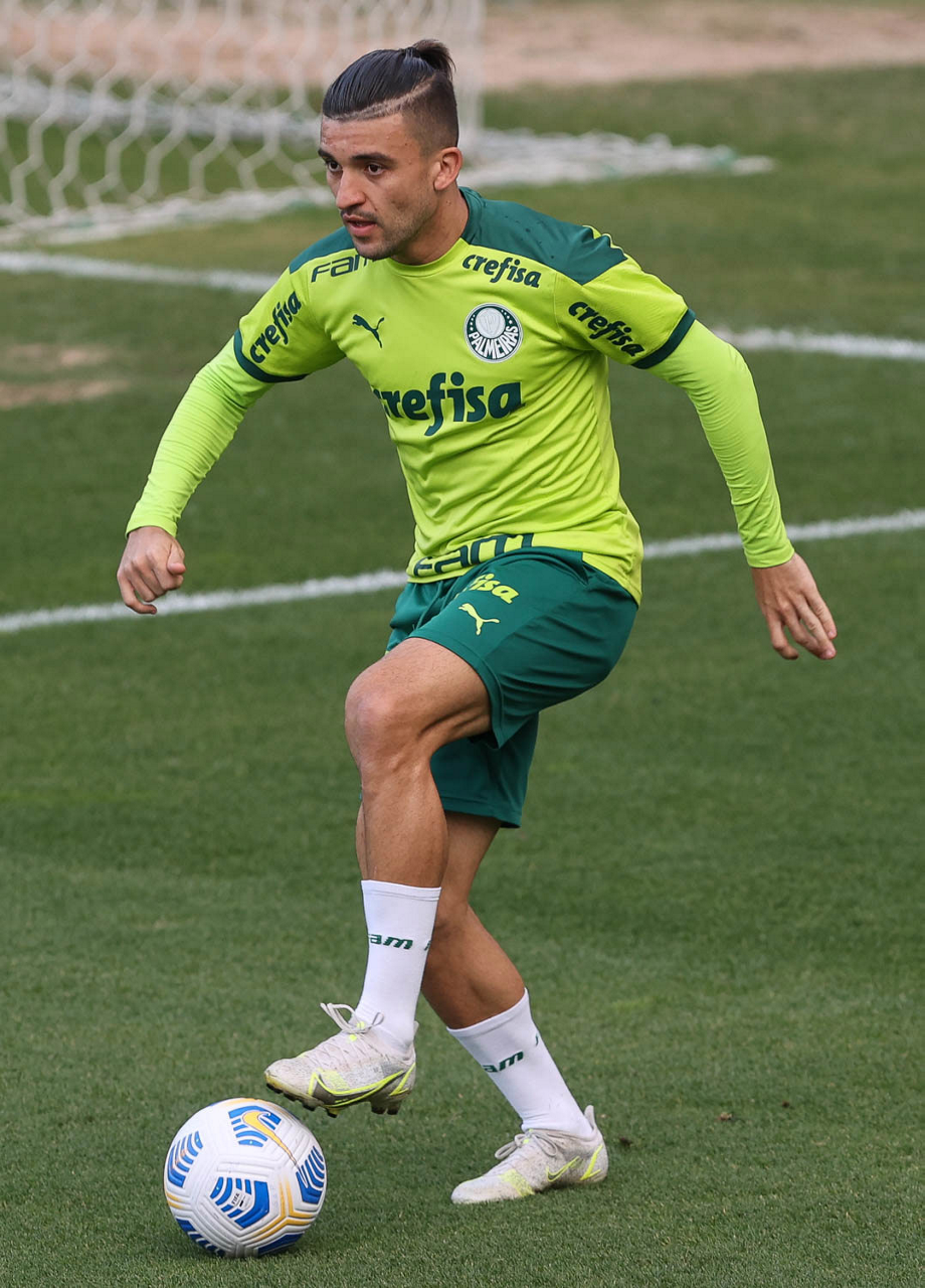 O jogador Raphael Veiga, da SE Palmeiras, durante treinamento, na Academia de Futebol. (Foto: Cesar Greco)
