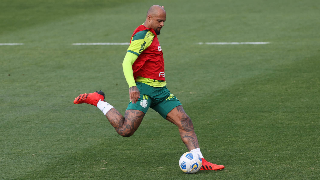 O jogador Felipe Melo, da SE Palmeiras, durante treinamento, na Academia de Futebol. (Foto: Cesar Greco)
