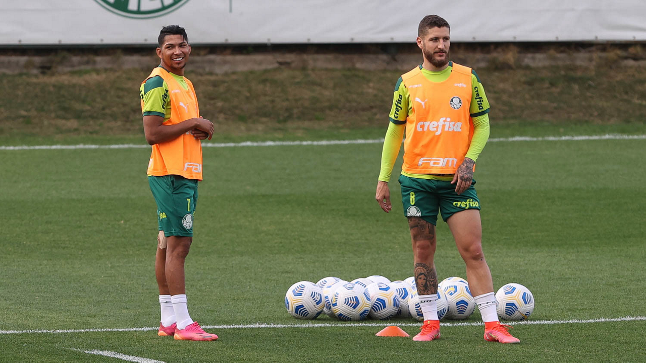 Os jogadores Rony e Zé Rafael (D), da SE Palmeiras, durante treinamento, na Academia de Futebol. (Foto: Cesar Greco)