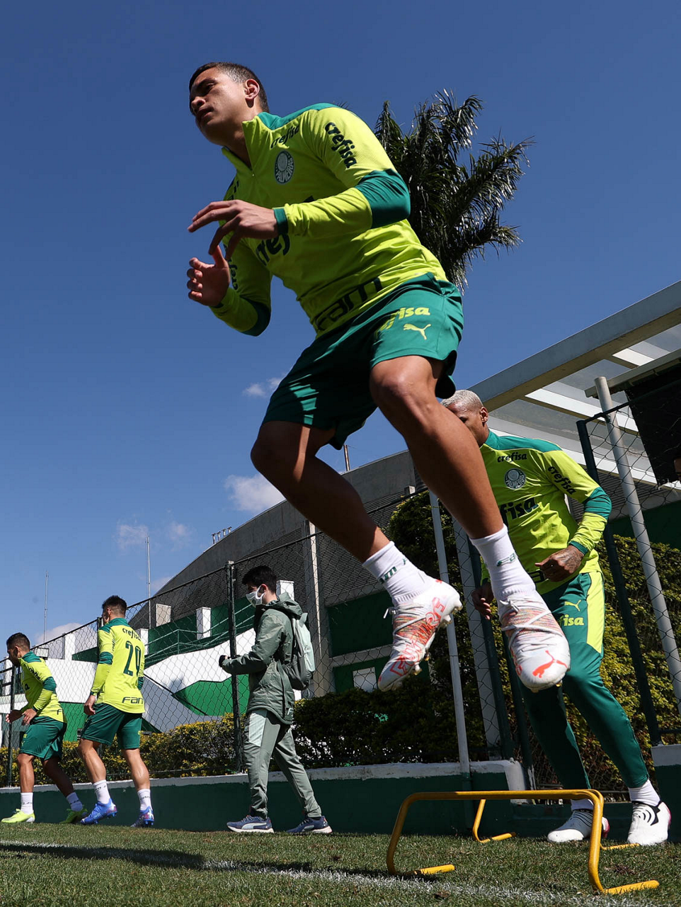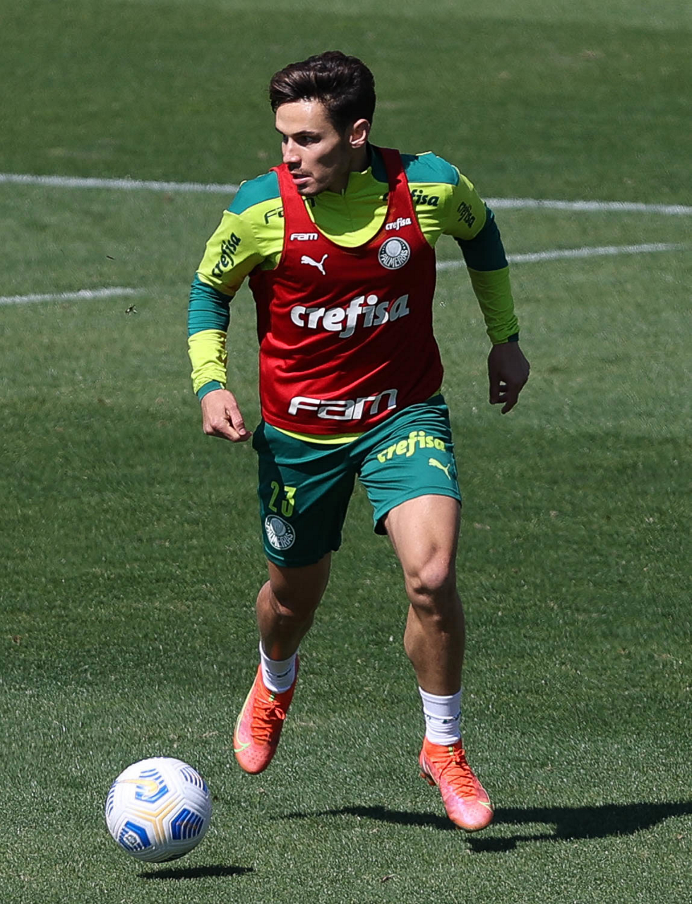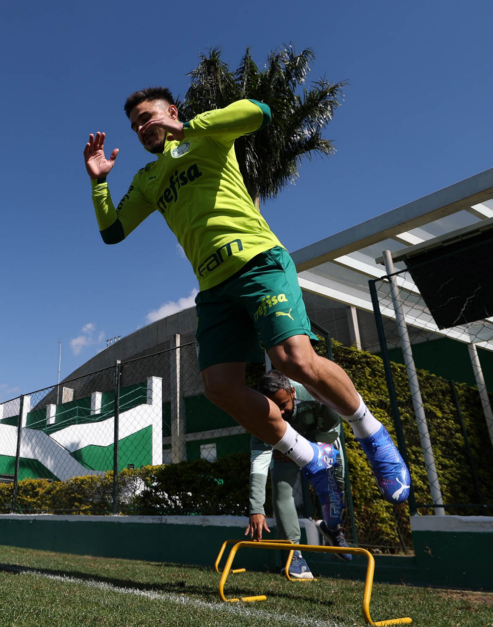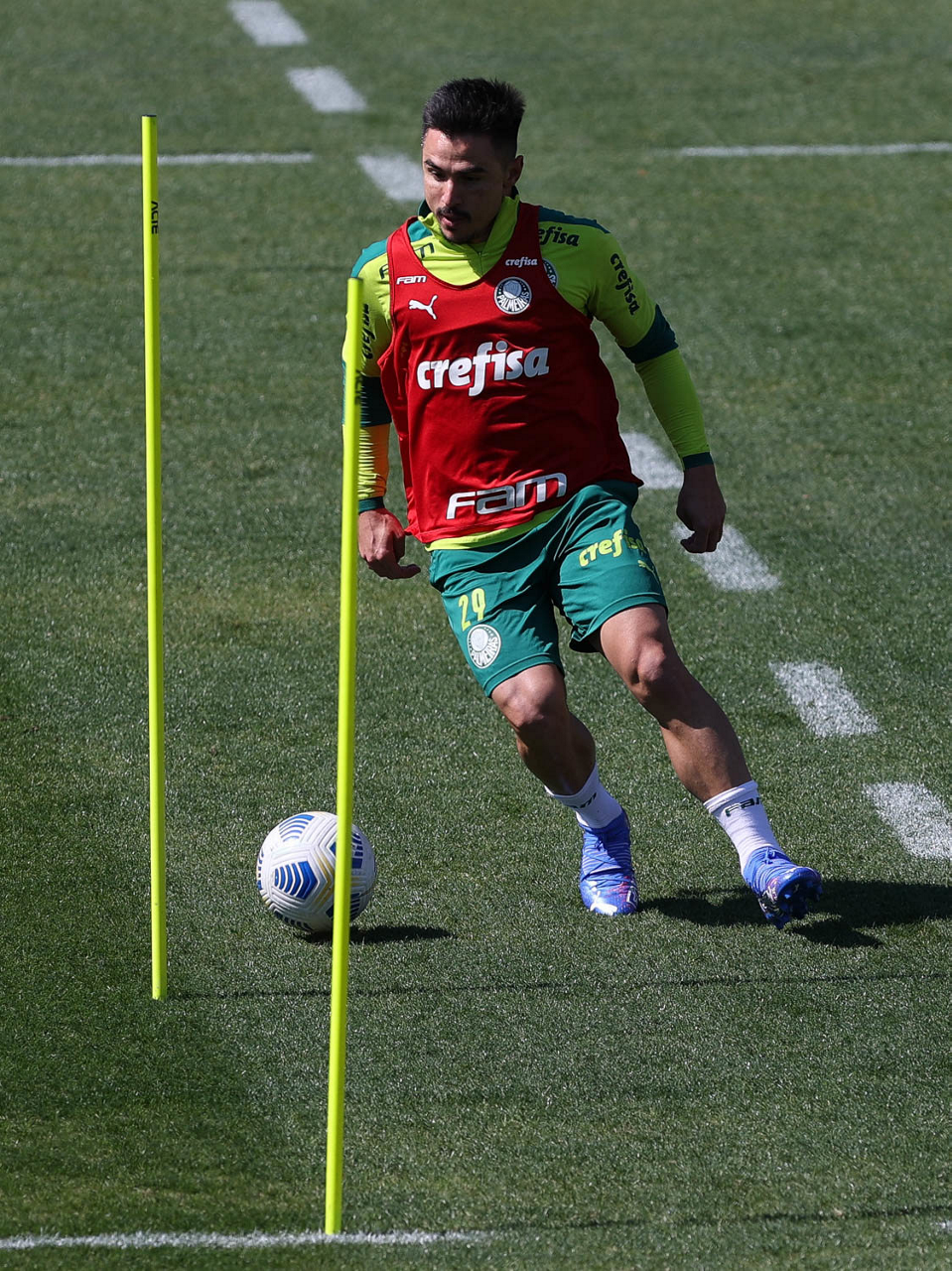 O jogador Raphael Veiga, da SE Palmeiras, durante treinamento, na Academia de Futebol. (Foto: Cesar Greco)