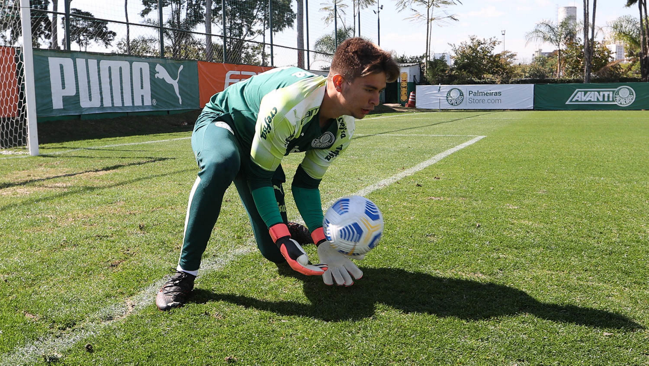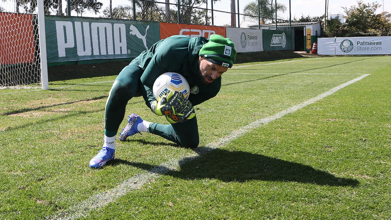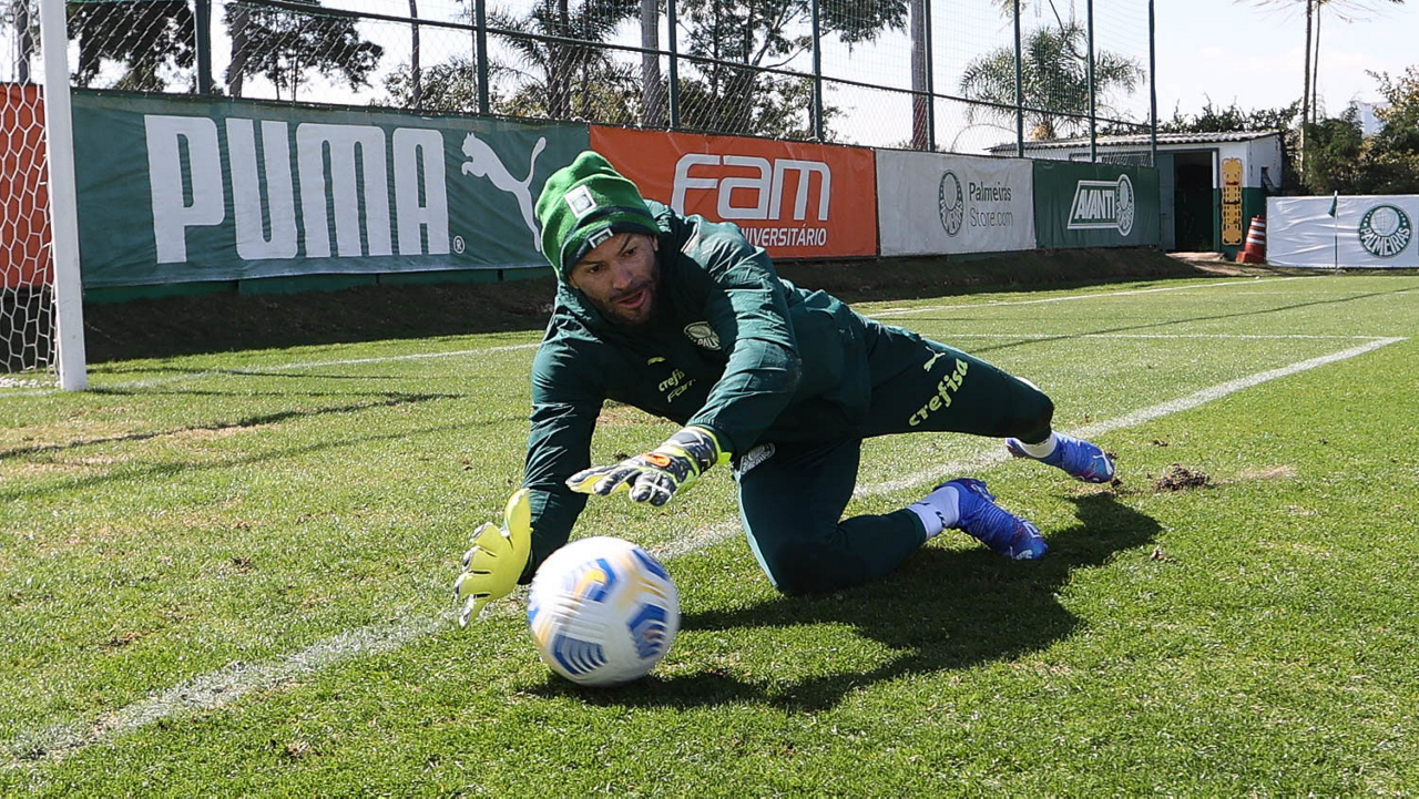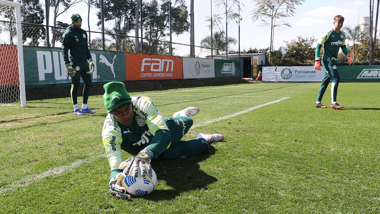 O goleiro Weverton, da SE Palmeiras, durante treinamento, na Academia de Futebol. (Foto: Cesar Greco)