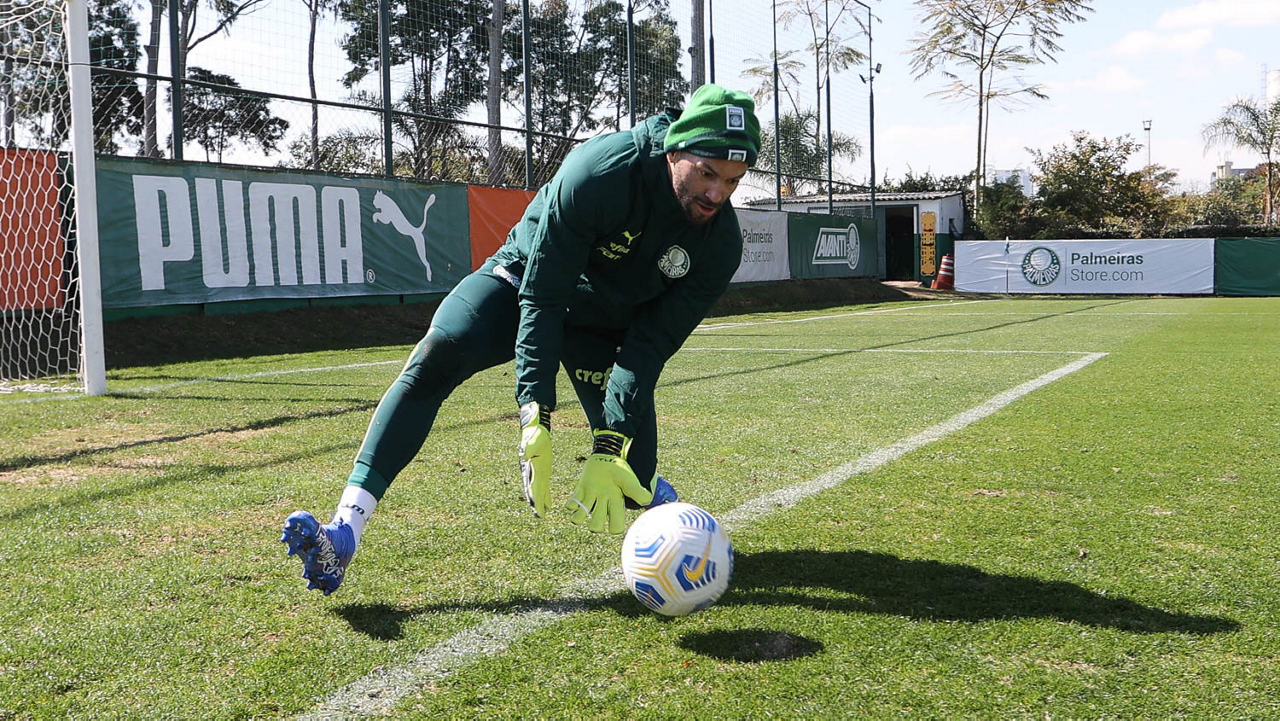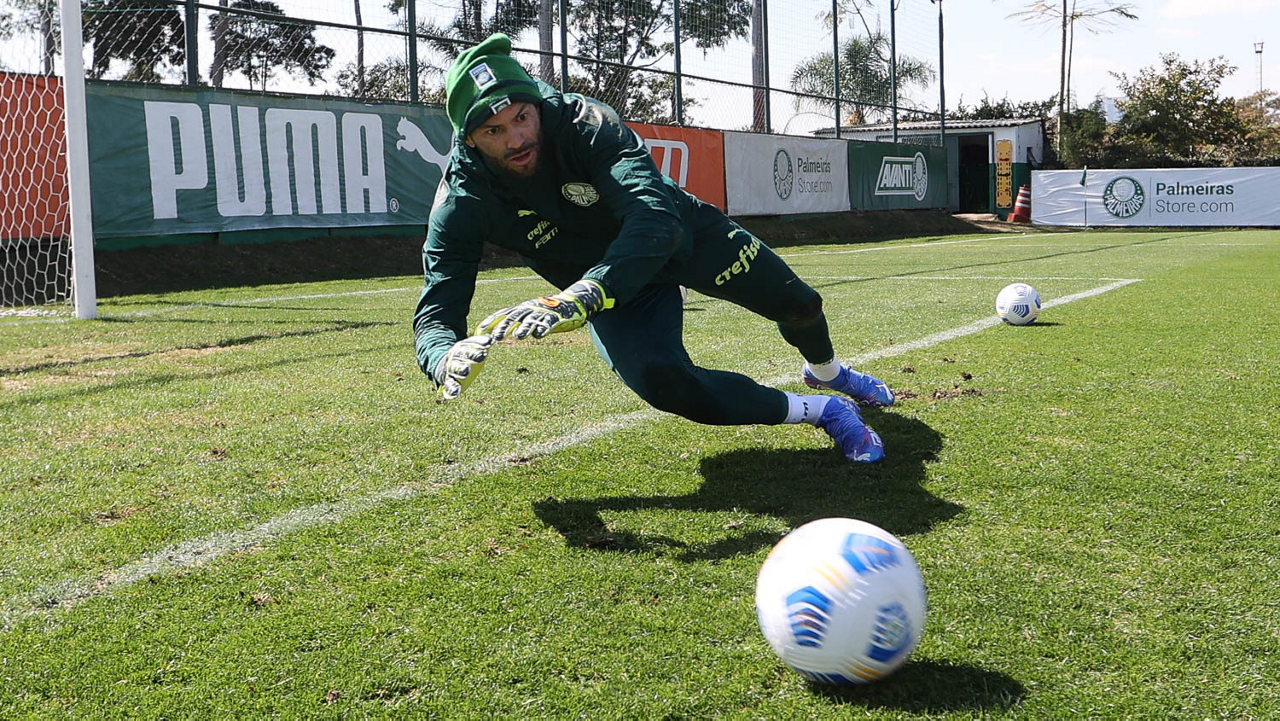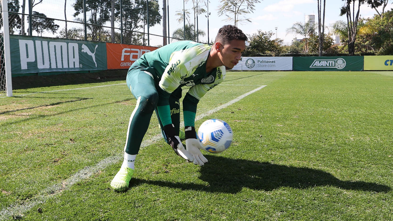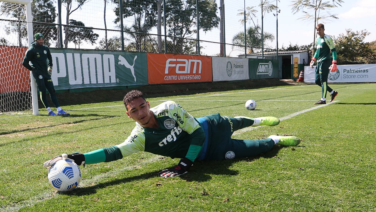 O goleiro Weverton, da SE Palmeiras, durante treinamento, na Academia de Futebol. (Foto: Cesar Greco)