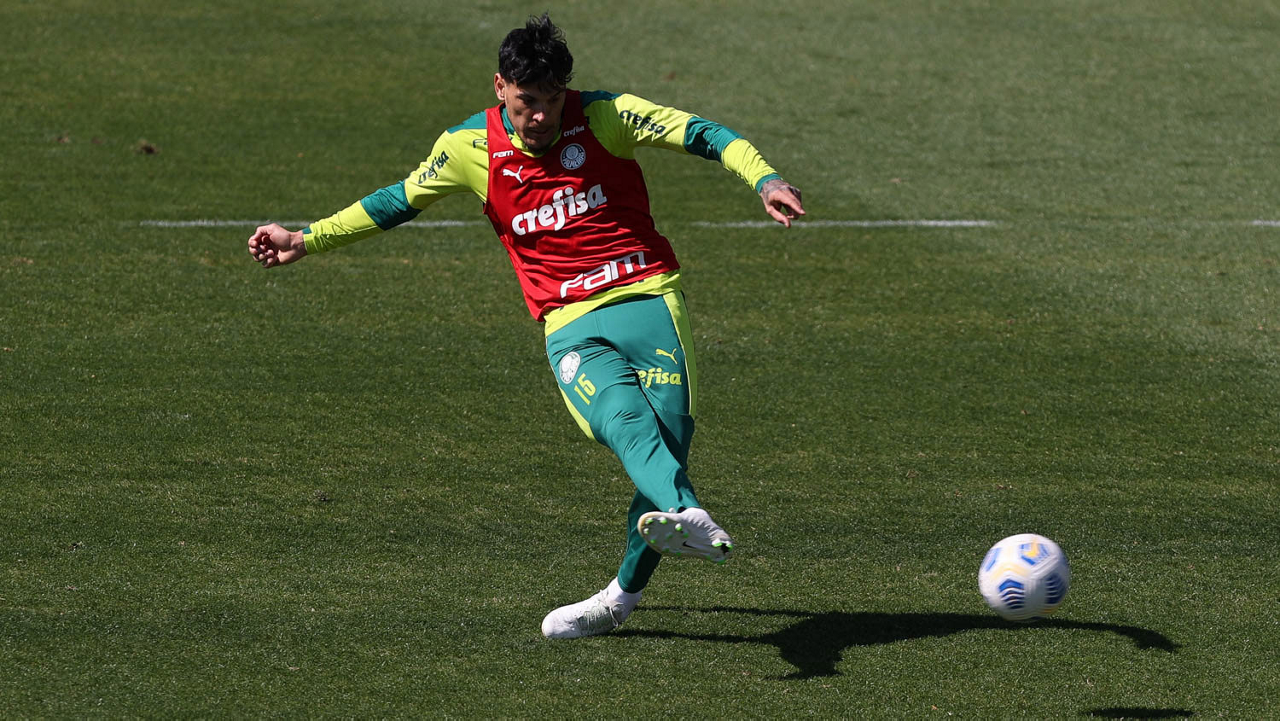 O jogador Gustavo Scarpa, da SE Palmeiras, durante treinamento, na Academia de Futebol. (Foto: Cesar Greco)