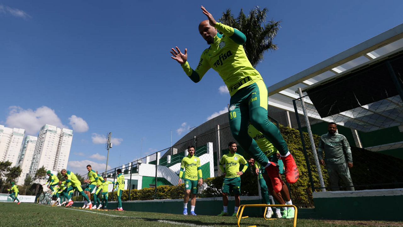 O jogador Felipe Melo, da SE Palmeiras, durante treinamento, na Academia de Futebol. (Foto: Cesar Greco)