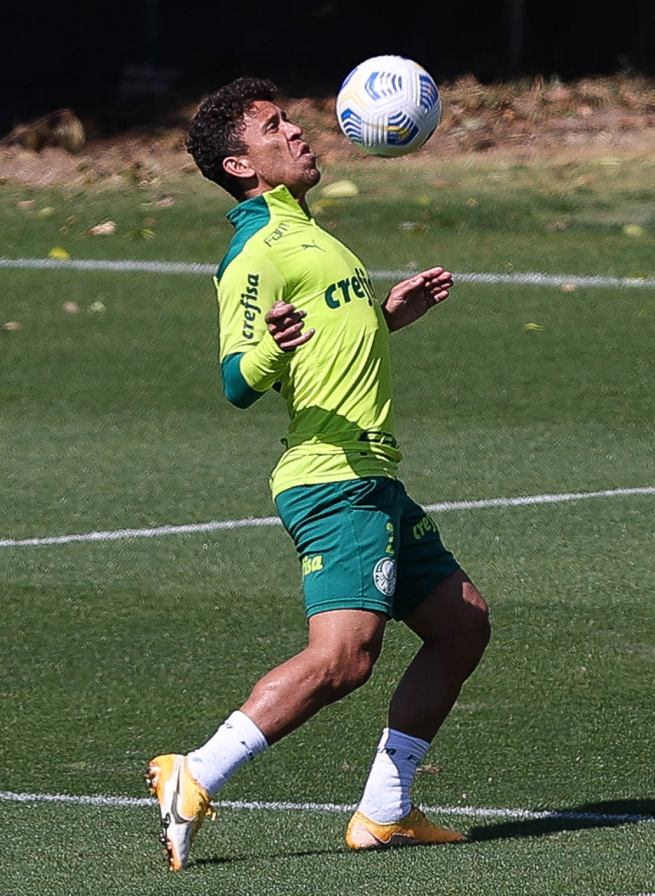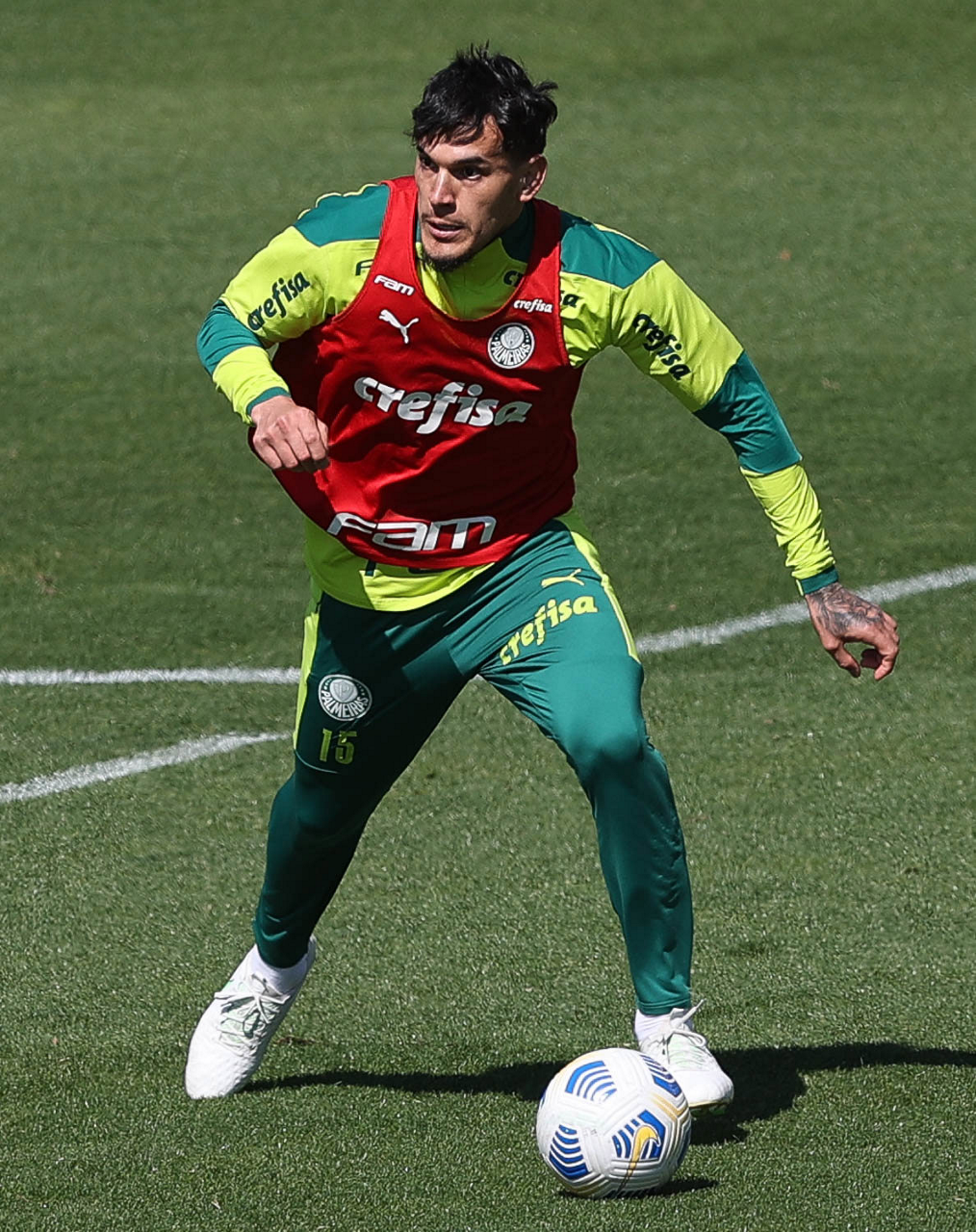 O jogador Gustavo Gómez, da SE Palmeiras, durante treinamento, na Academia de Futebol. (Foto: Cesar Greco)