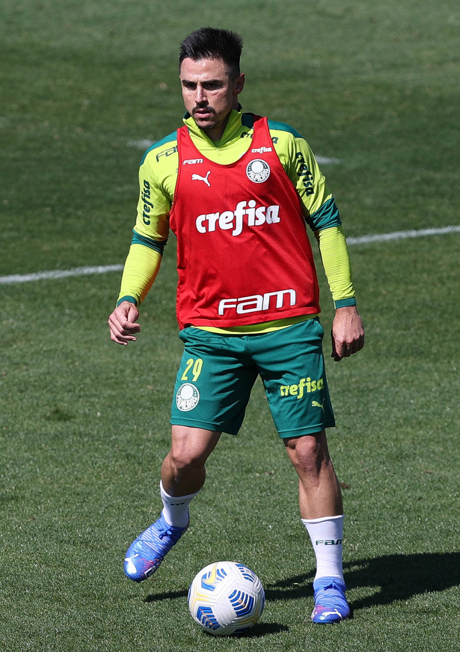 O jogador Matheus Fernandes, da SE Palmeiras, durante treinamento, na Academia de Futebol. (Foto: Cesar Greco)
