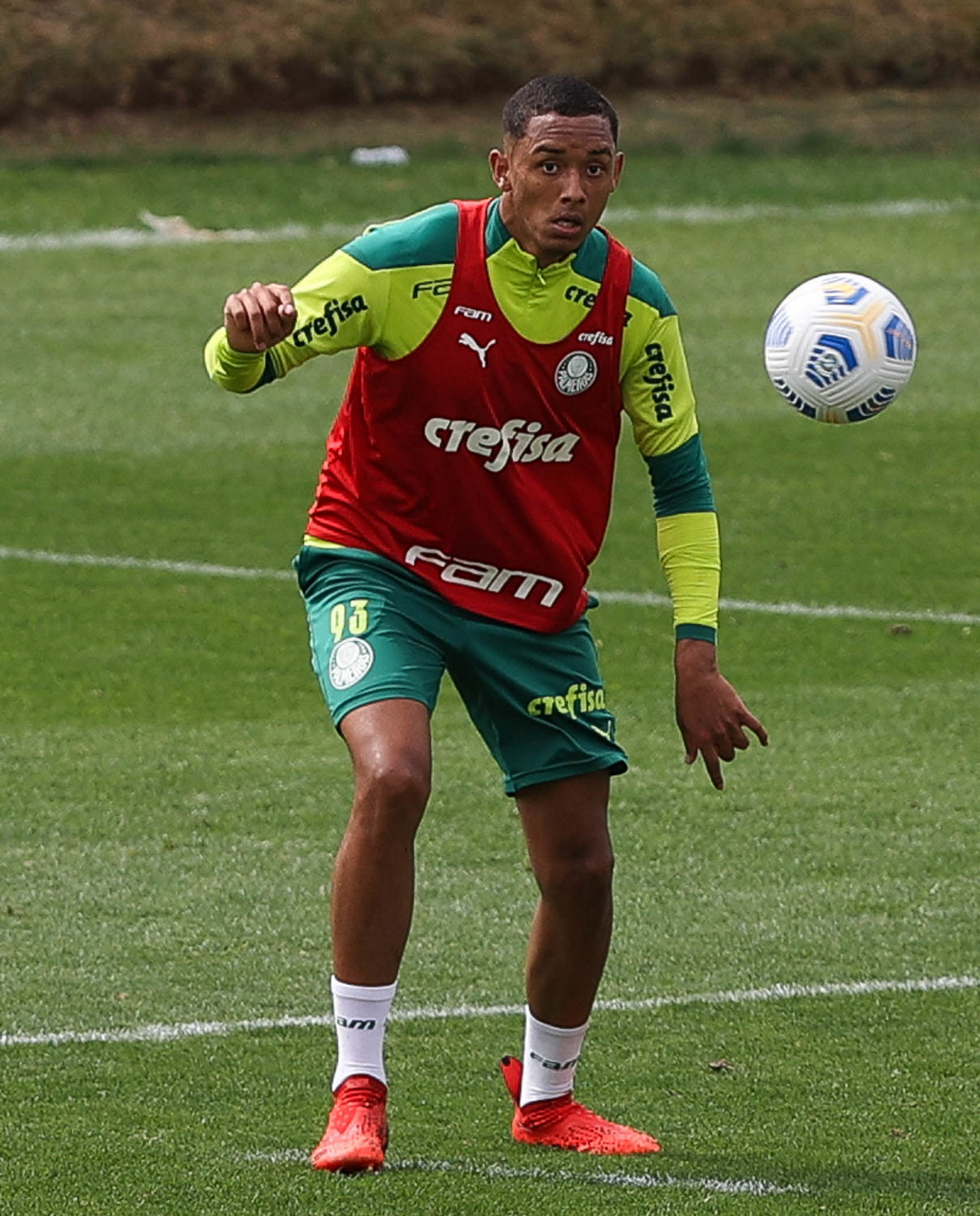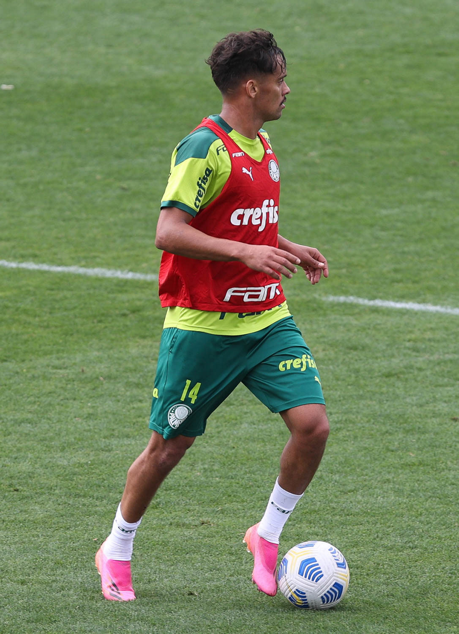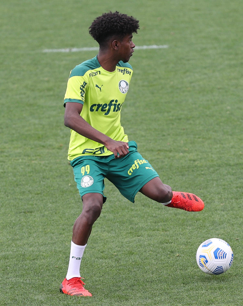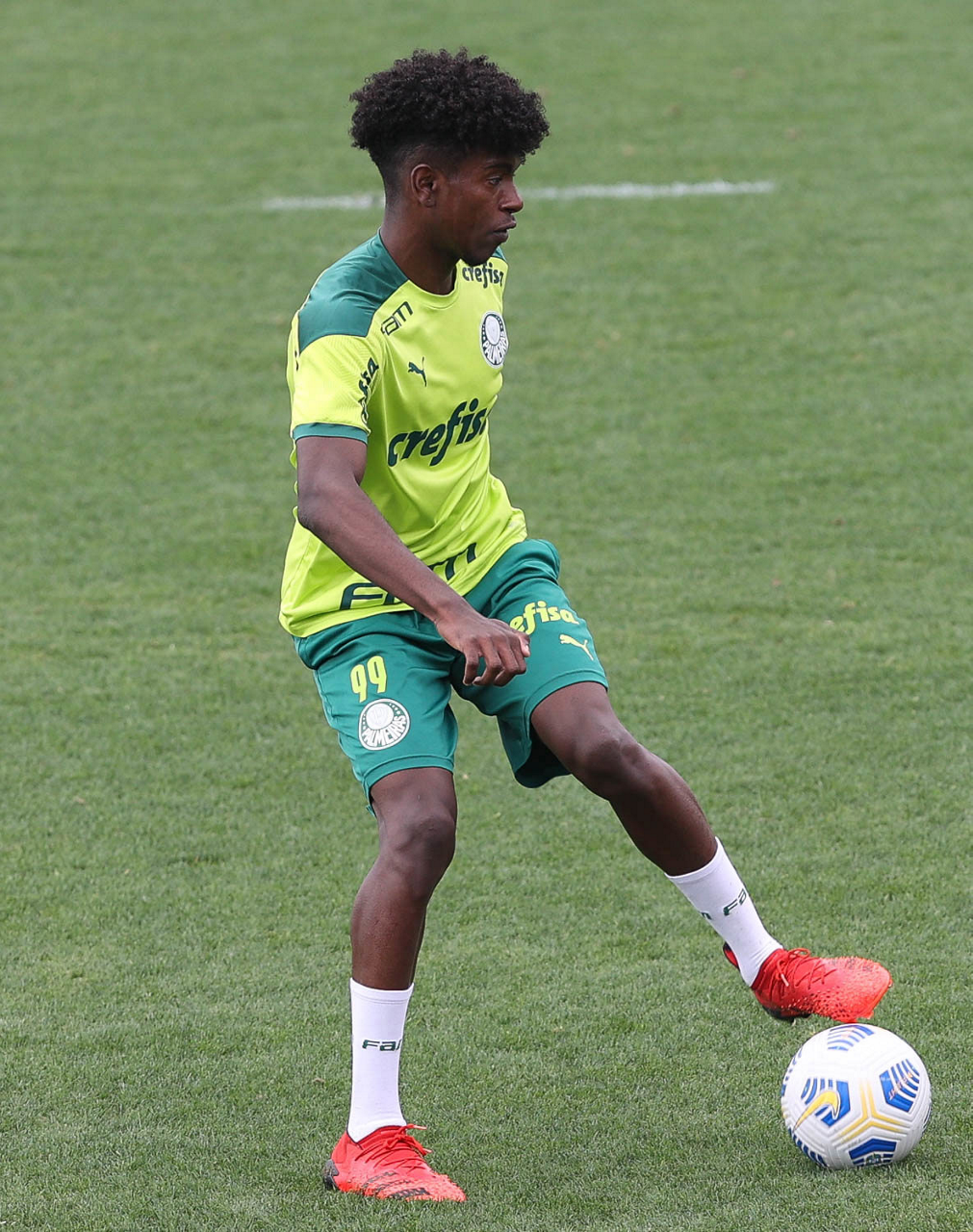 O jogador Gabriel Menino, da SE Palmeiras, durante treinamento, na Academia de Futebol. (Foto: Cesar Greco)