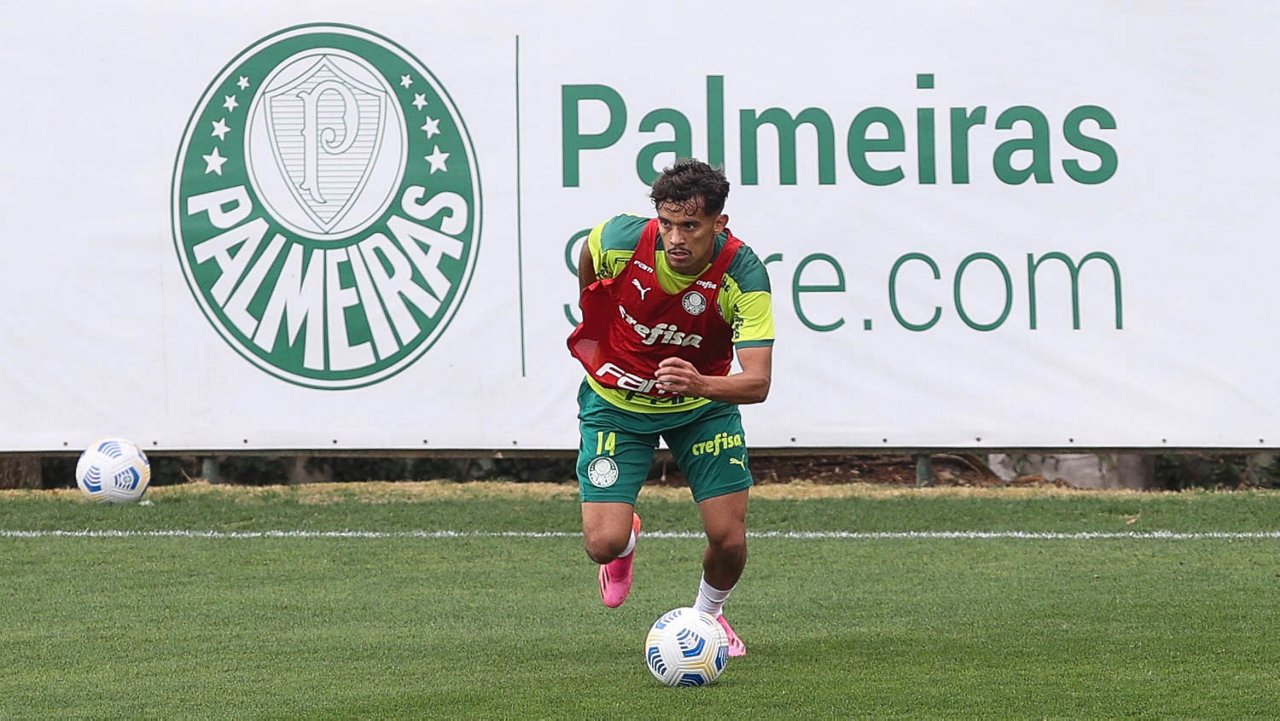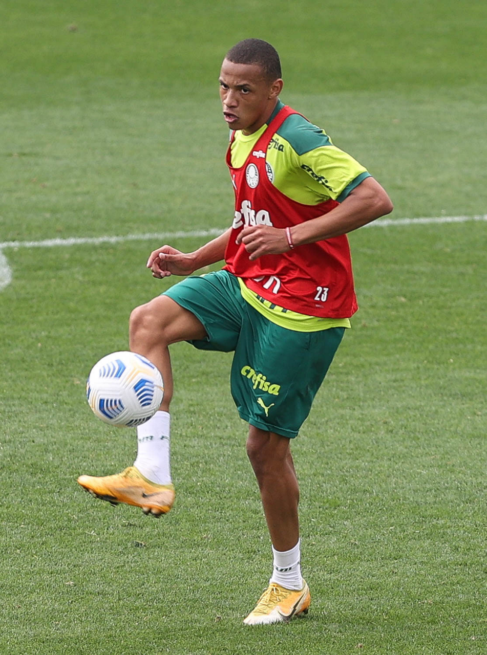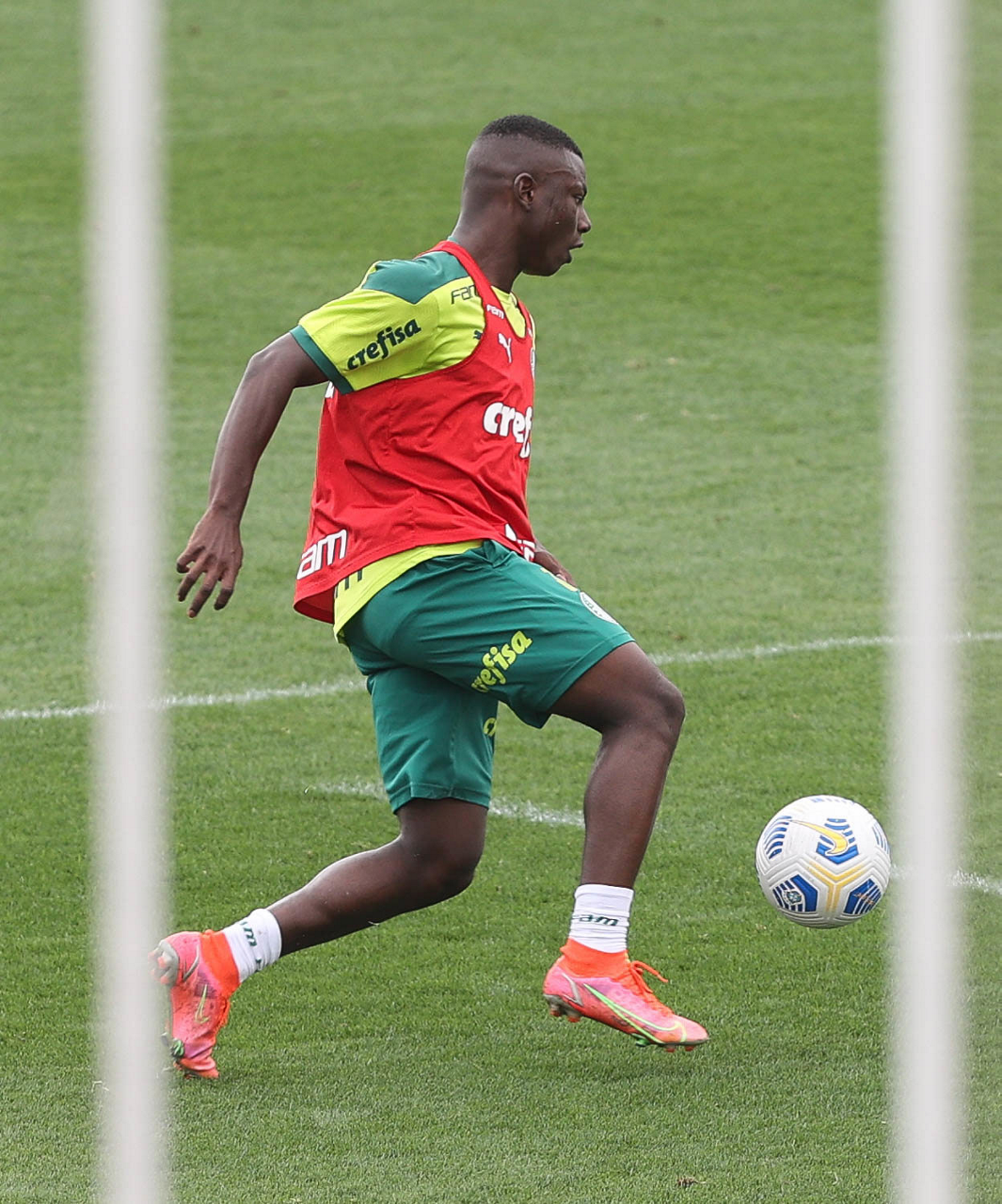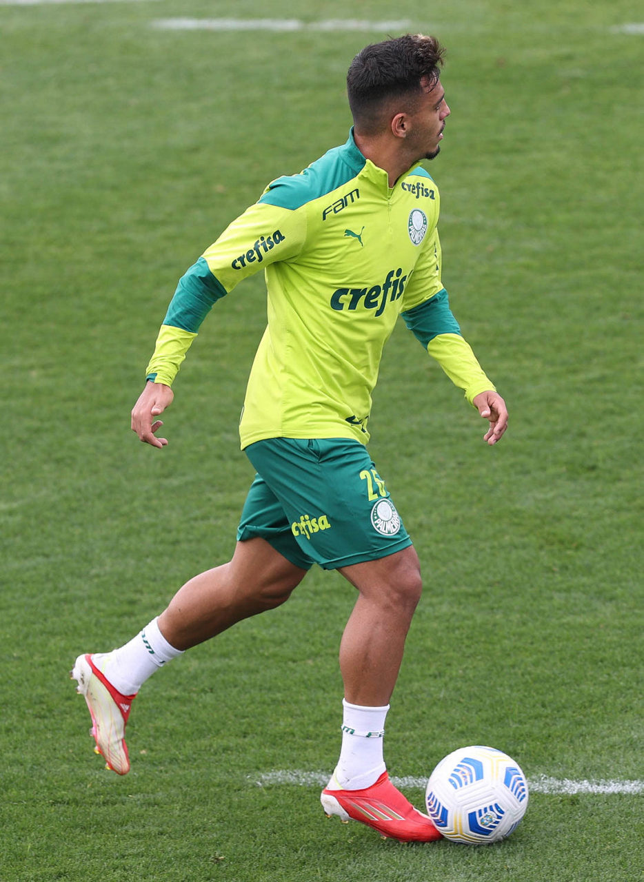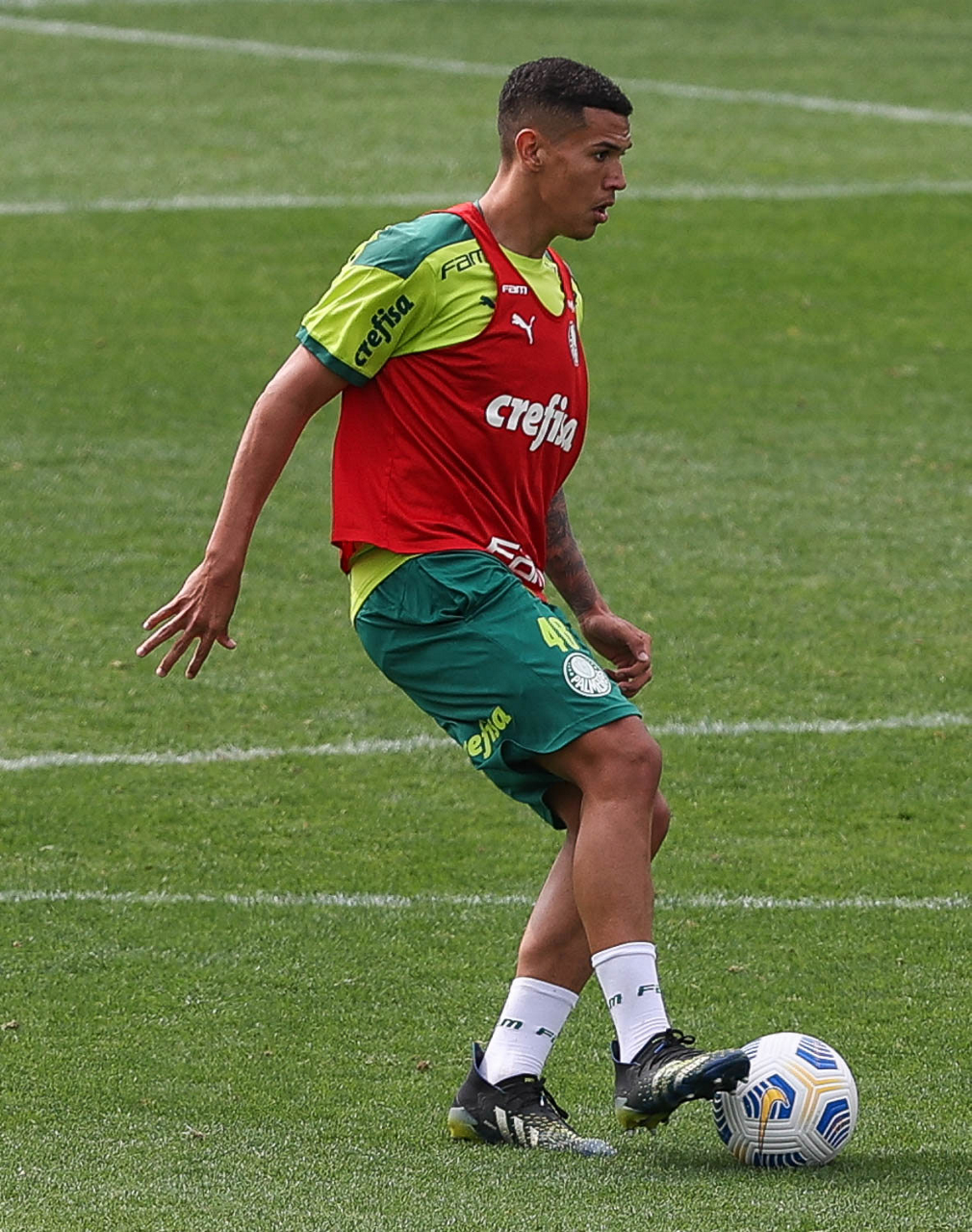 O jogador Gabriel Menino, da SE Palmeiras, durante treinamento, na Academia de Futebol. (Foto: Cesar Greco)