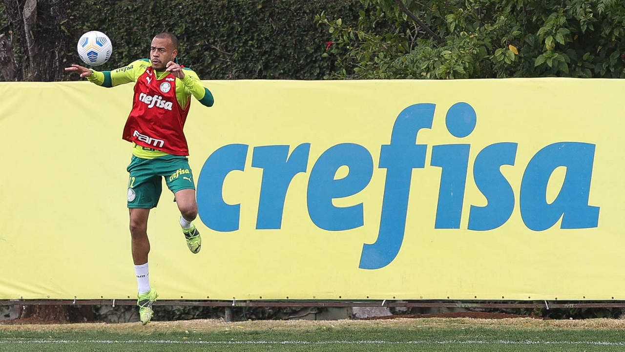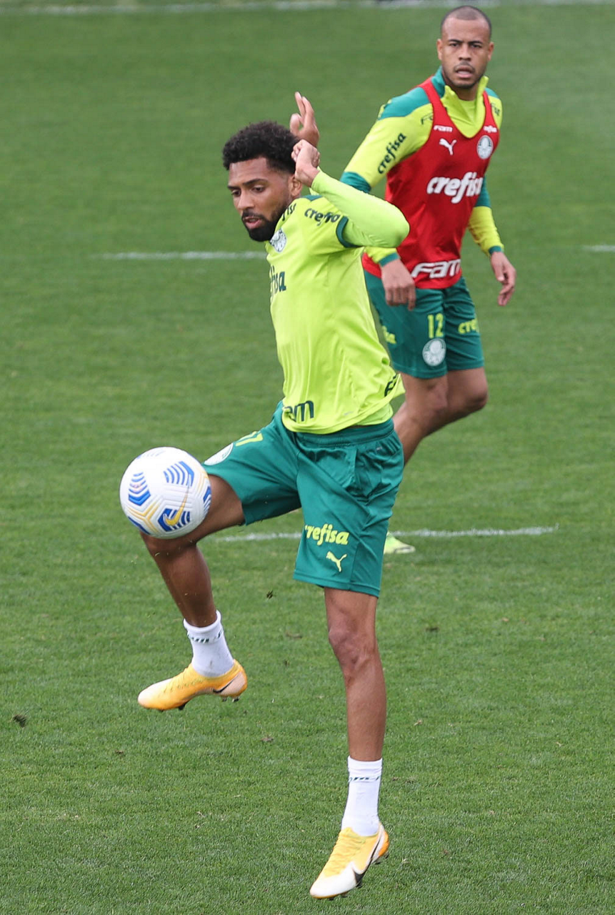 O jogador Fabinho, da SE Palmeiras, durante treinamento, na Academia de Futebol. (Foto: Cesar Greco)