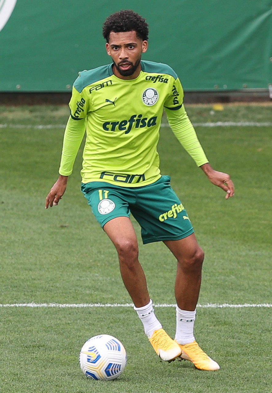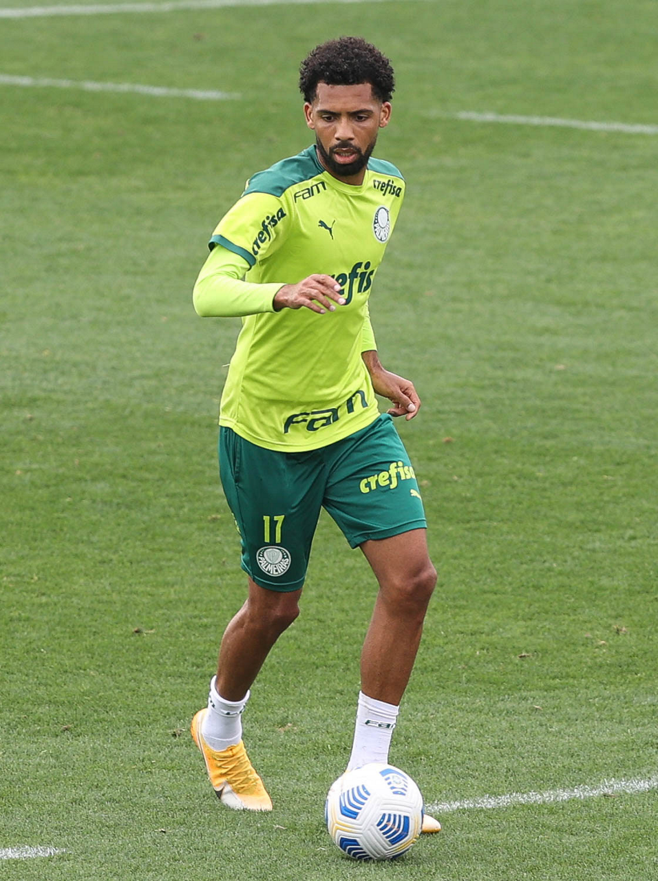 O jogador Matheus Fernandes, da SE Palmeiras, durante treinamento, na Academia de Futebol. (Foto: Cesar Greco)