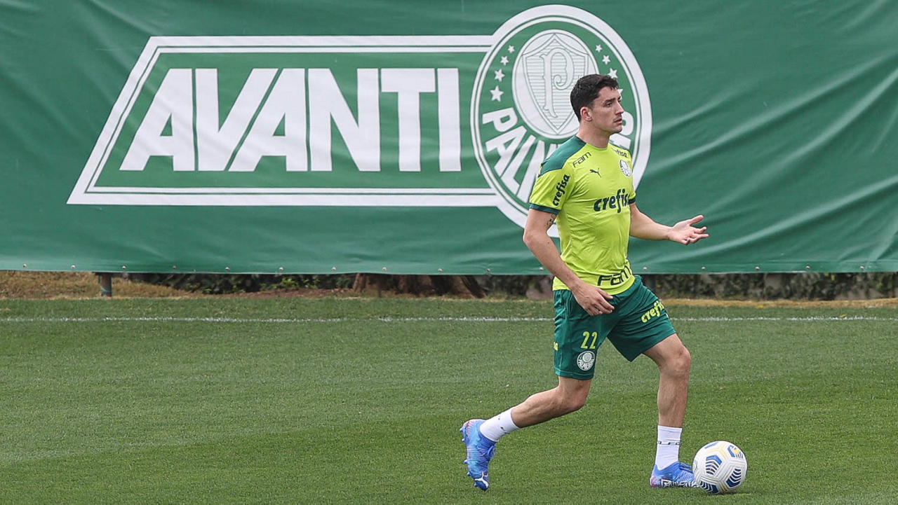 O jogador Joaquín Piquerez, da SE Palmeiras, durante treinamento, na Academia de Futebol. (Foto: Cesar Greco)