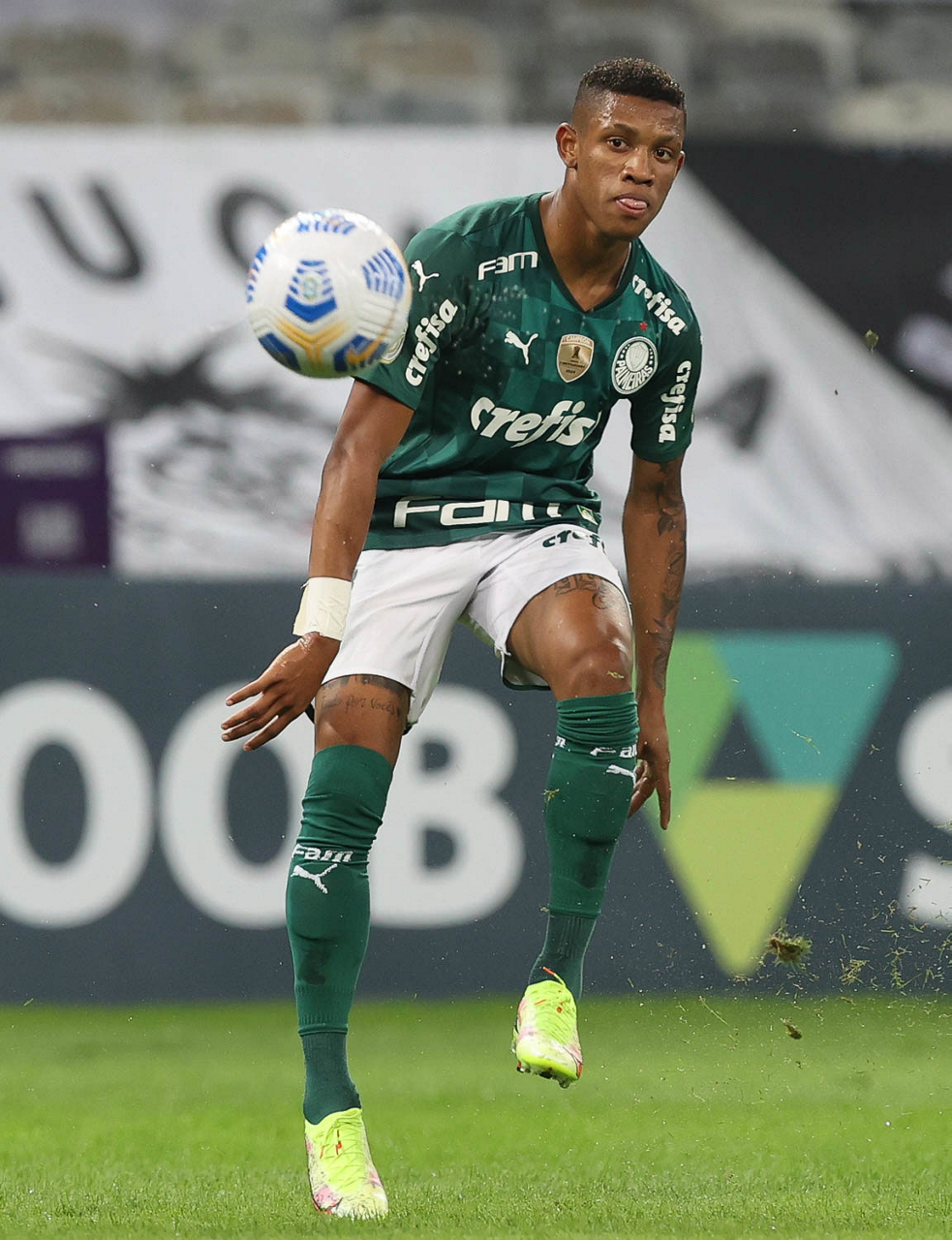 O jogador Gabriel Veron, da SE Palmeiras, em jogo contra a equipe do C Atlético Mineiro, durante partida válida pela décima sexta rodada, do Campeonato Brasileiro, Série A, no estádio Mineirão. (Foto: Cesar Greco)