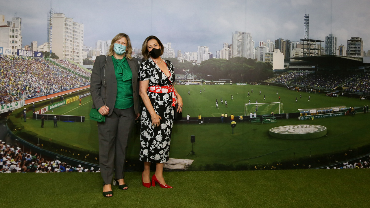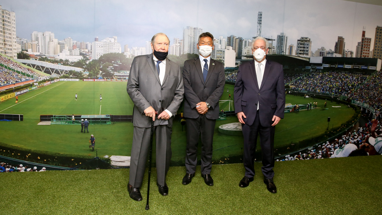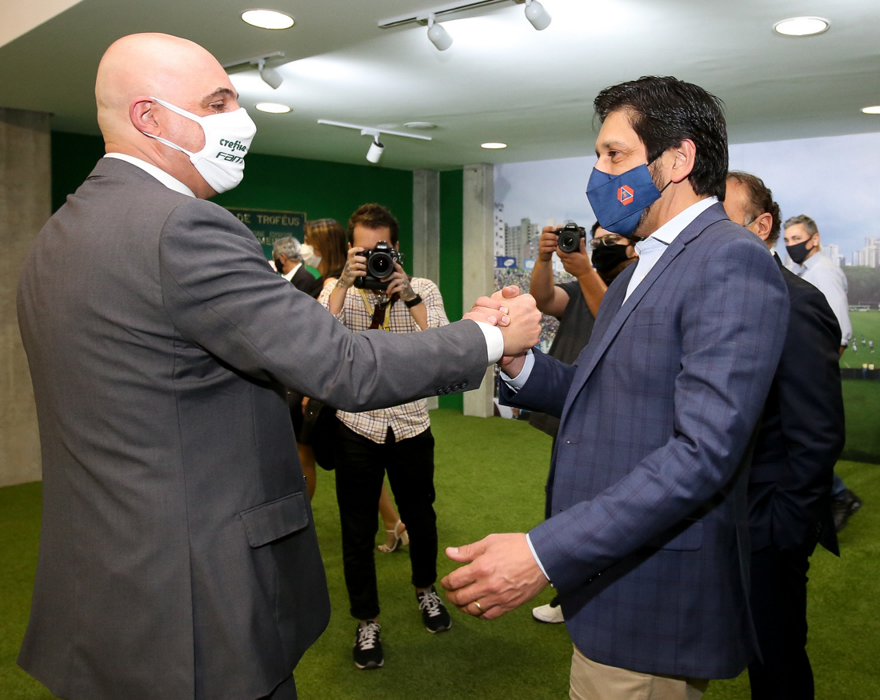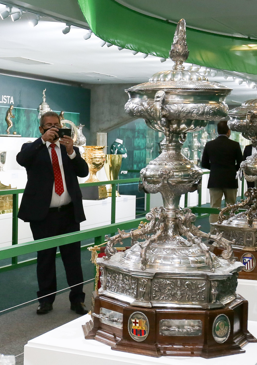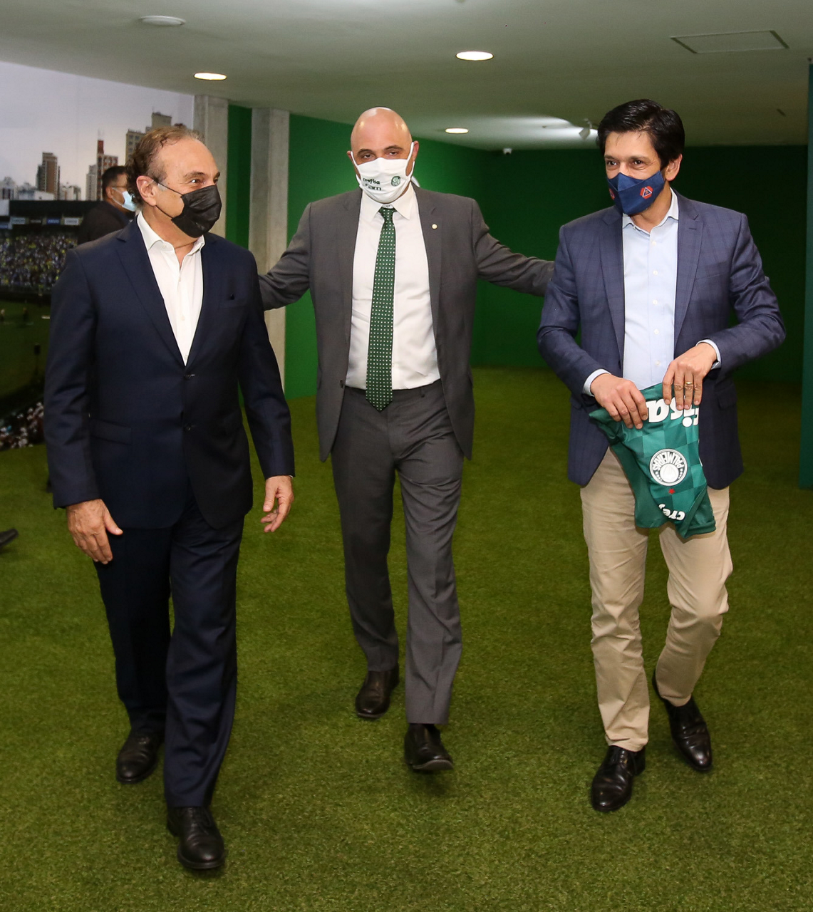 O prefeito Ricardo Nunes e outras autoridades da cidade de São Paulo visitam a Sala de Troféus do Palmeiras, no Allianz Parque. (Foto: Fabio Menotti/Palmeiras)