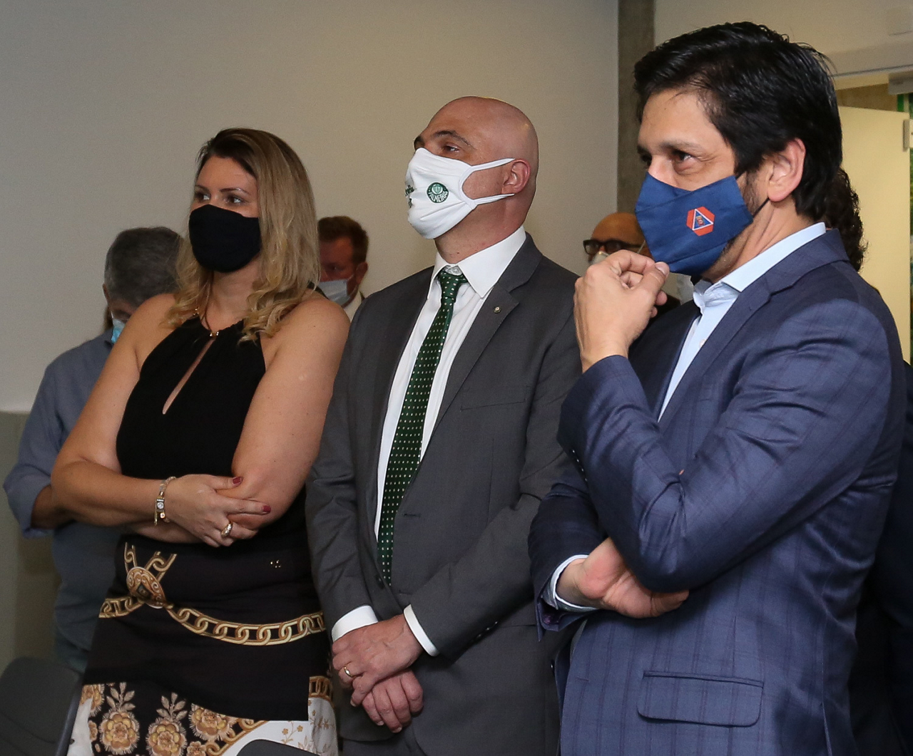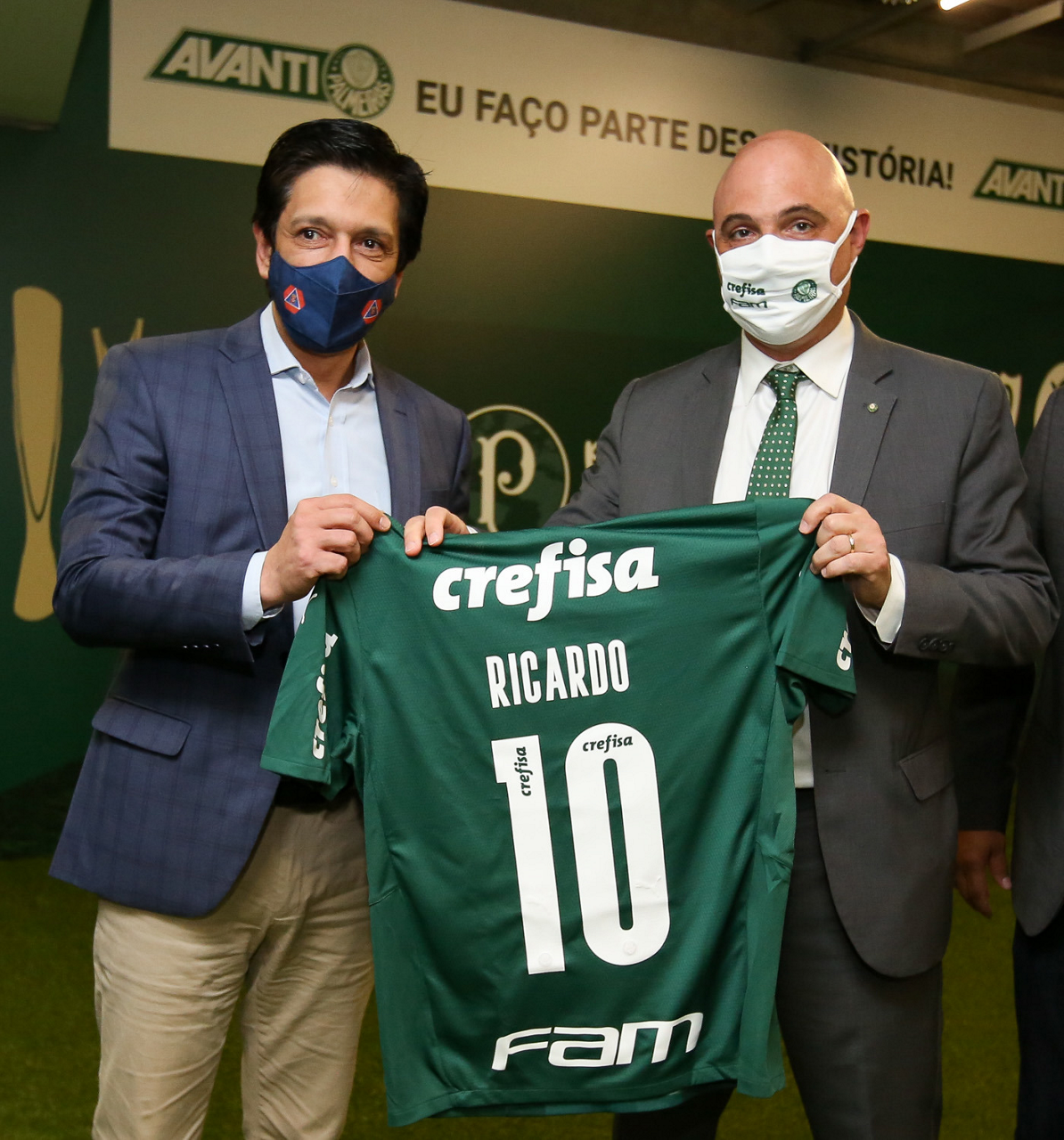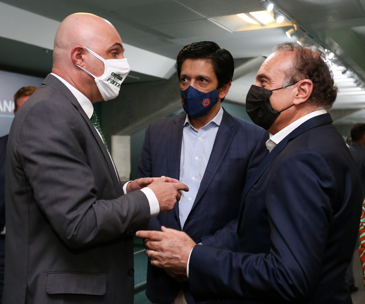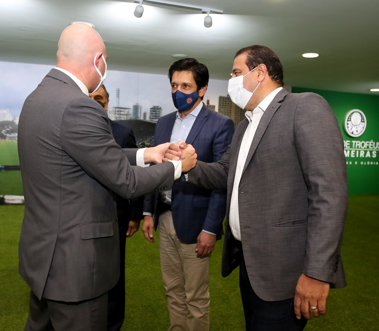 O prefeito Ricardo Nunes e outras autoridades da cidade de São Paulo visitam a Sala de Troféus do Palmeiras, no Allianz Parque. (Foto: Fabio Menotti/Palmeiras)