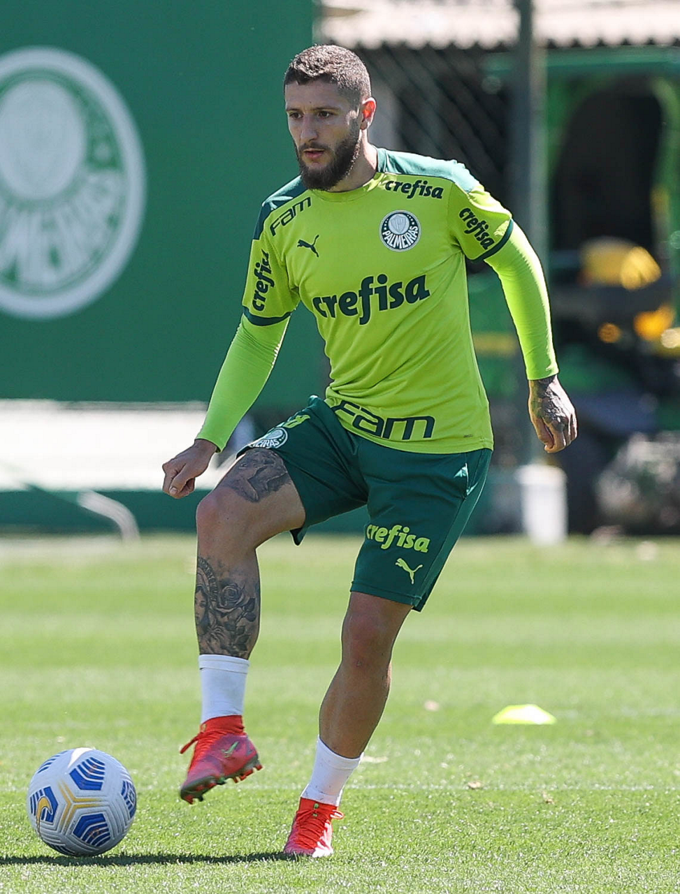 Os goleiros Natan e Vinicius (E e D em pé), os jogadores Wesley, Renan, Zé Rafael, Luan, Danilo Barbosa e Marcos Rocha (E/D em pé) e Patrick de Paula, Rony, Gabriel Menino, Luiz Adriano, Raphael Veiga e Dudu (E/D agachados), da SE Palmeiras, durante treinamento, na Academia de Futebol. (Foto: Cesar Greco)
