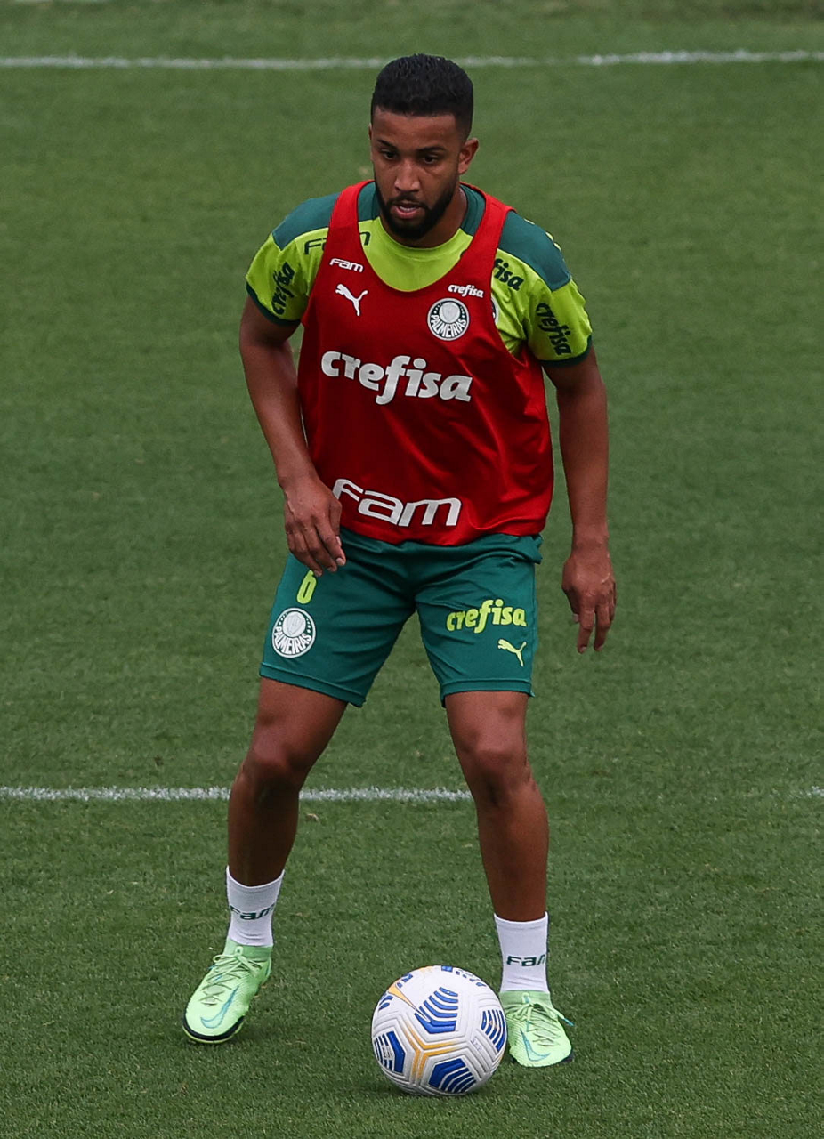 O jogador Matheus Fernandes, da SE Palmeiras, durante treinamento, na Academia de Futebol. (Foto: Cesar Greco)
