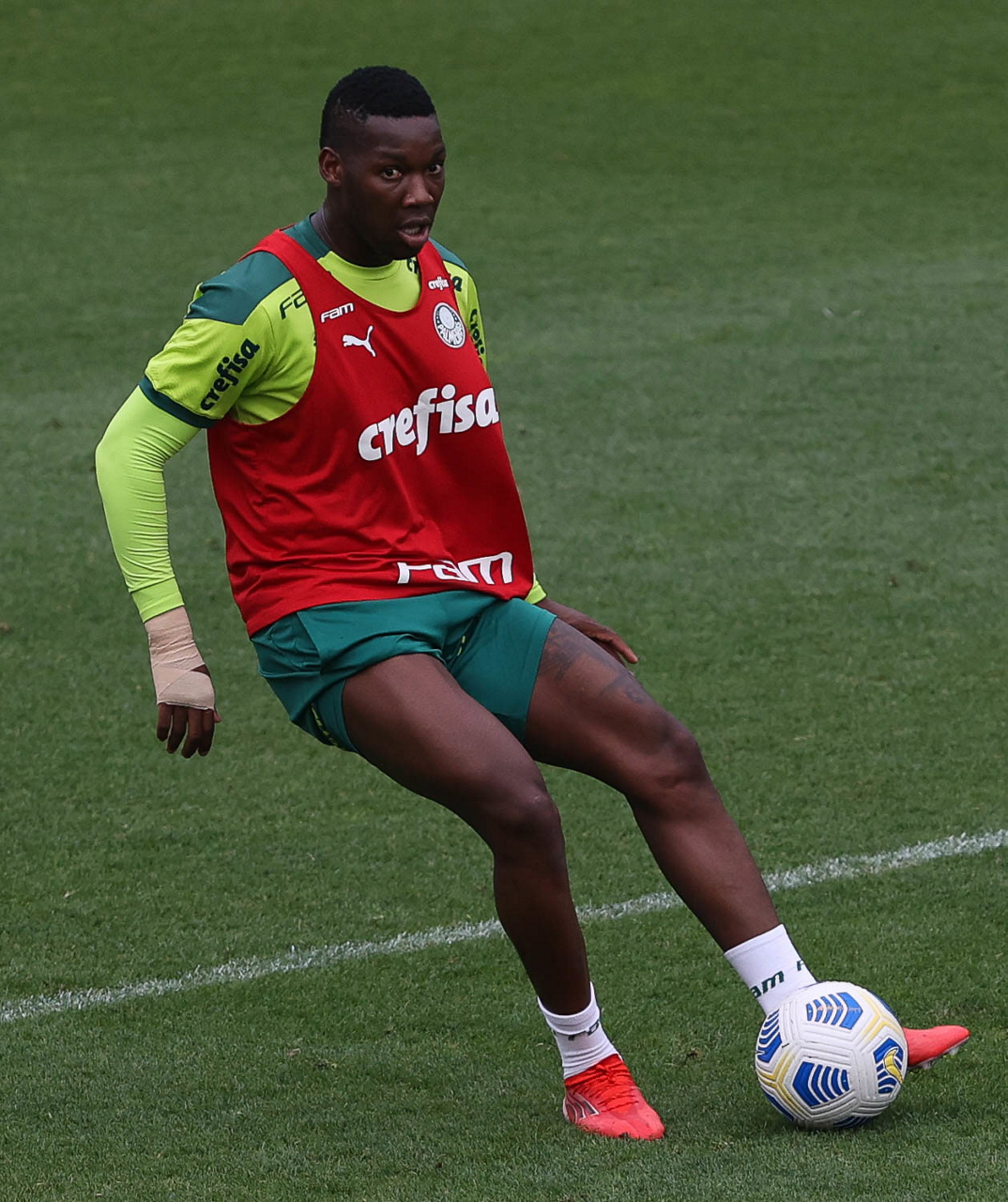 O jogador Deyverson, da SE Palmeiras, durante treinamento, na Academia de Futebol. (Foto: Cesar Greco)