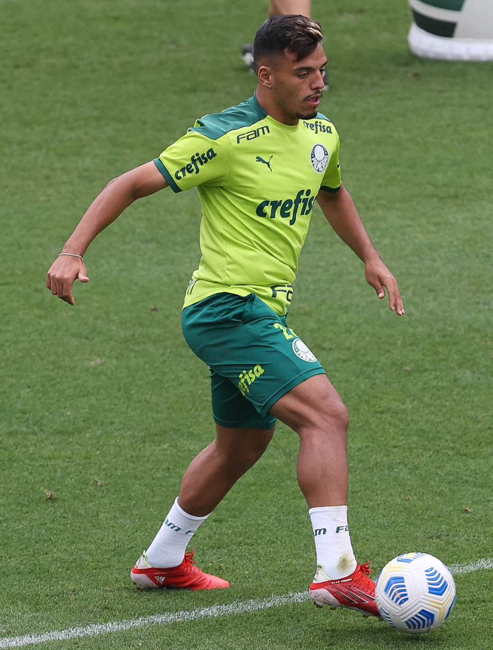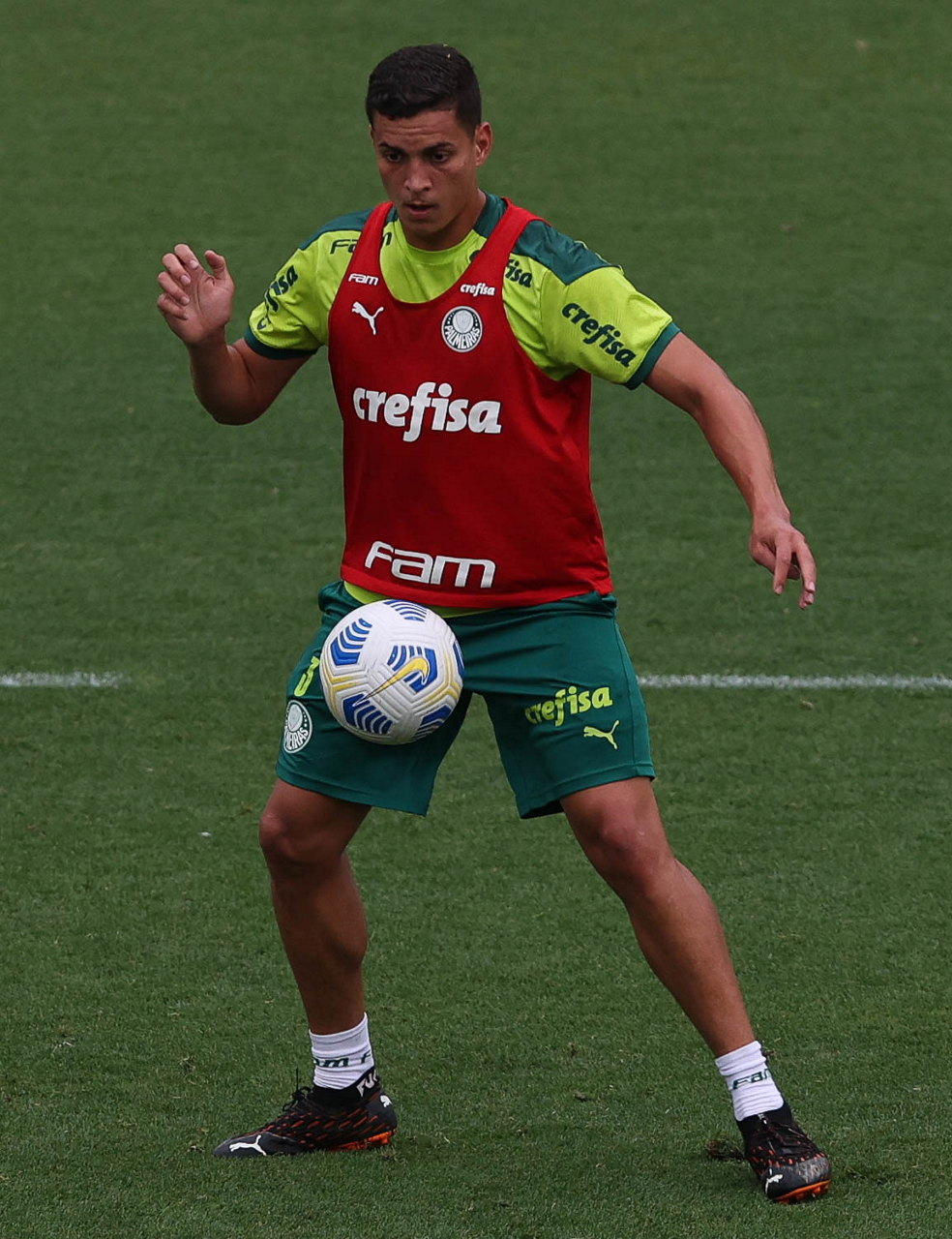 O jogador Gabriel Menino, da SE Palmeiras, durante treinamento, na Academia de Futebol. (Foto: Cesar Greco)