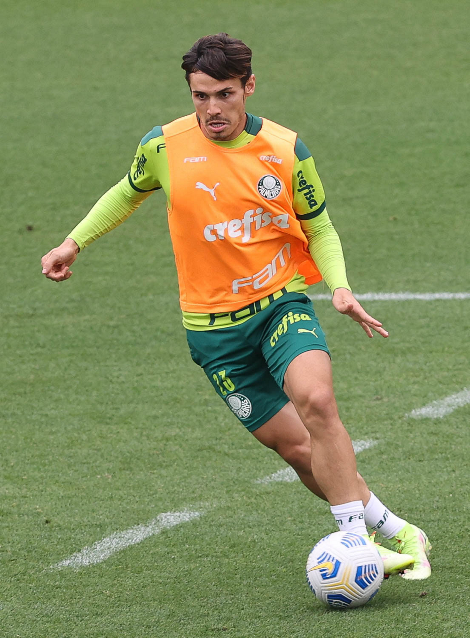 O jogador Raphael Veiga, da SE Palmeiras, durante treinamento, na Academia de Futebol. (Foto: Cesar Greco)