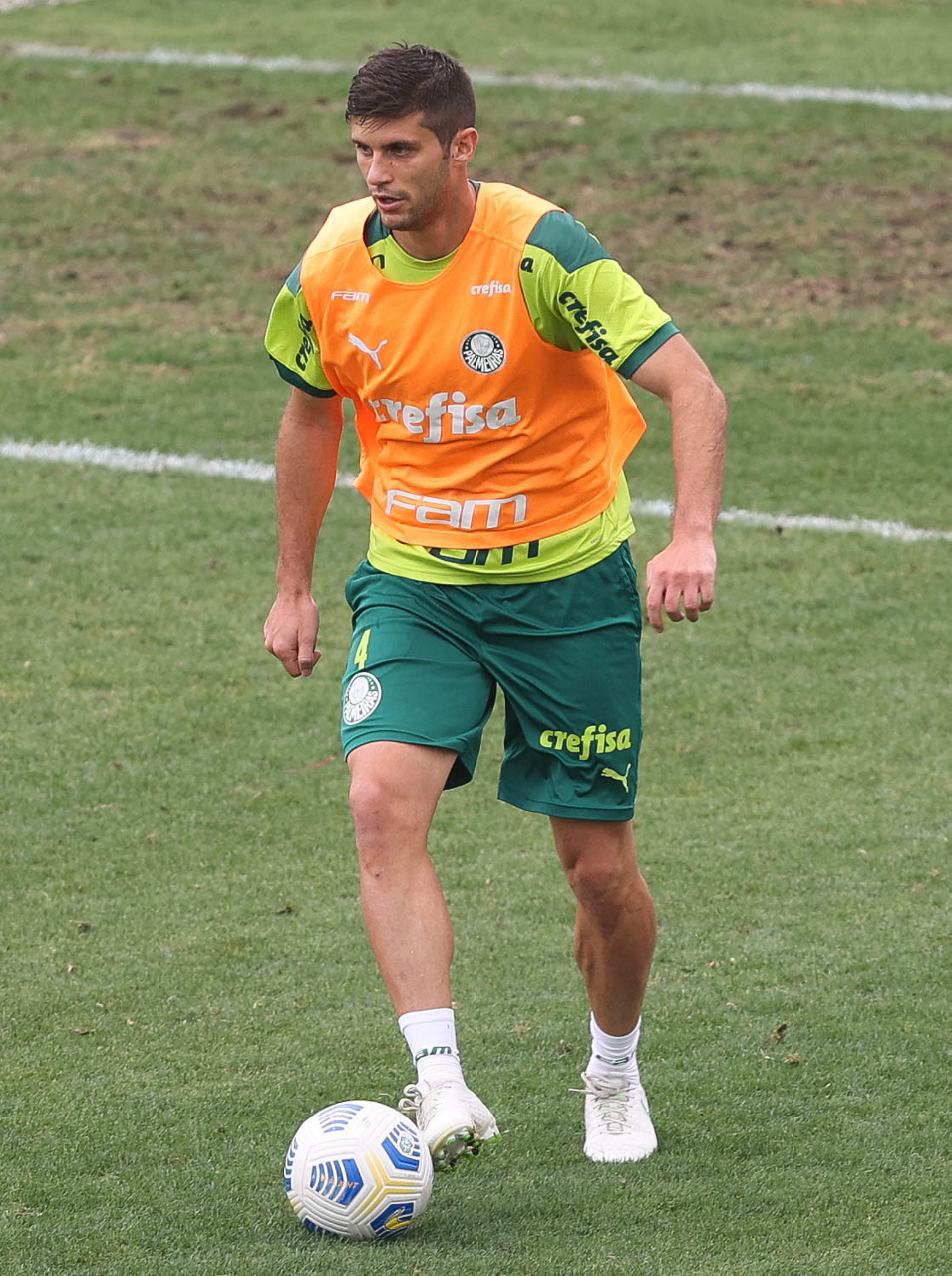 O jogador Joaquín Piquerez, da SE Palmeiras, durante treinamento, na Academia de Futebol. (Foto: Cesar Greco)