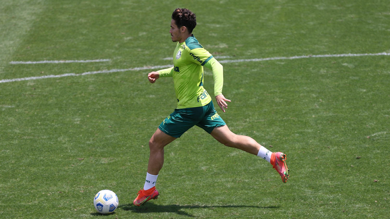O jogador Raphael Veiga, da SE Palmeiras, durante treinamento, na Academia de Futebol. (Foto: Cesar Greco)