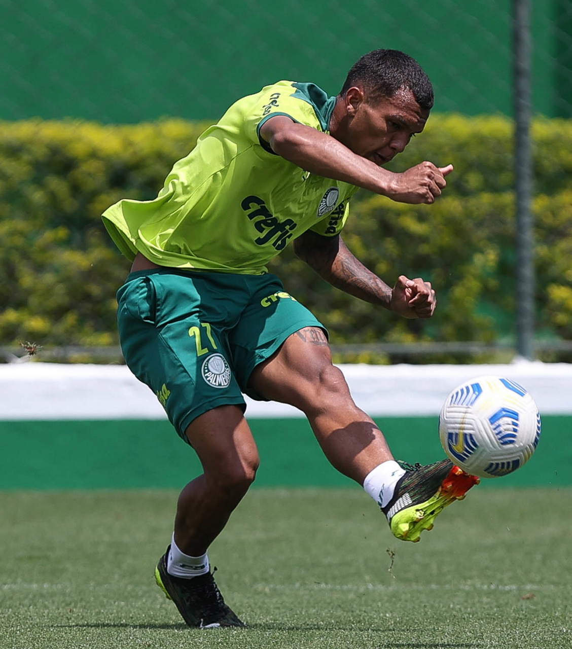 O jogador Wesley, da SE Palmeiras, durante treinamento, na Academia de Futebol. (Foto: Cesar Greco)