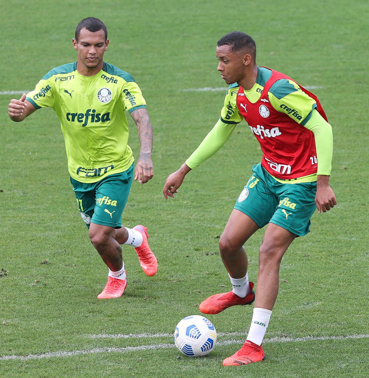 Os jogadores Danilo Barbosa e Deyverson (D), da SE Palmeiras, durante treinamento, na Academia de Futebol. (Foto: Cesar Greco)