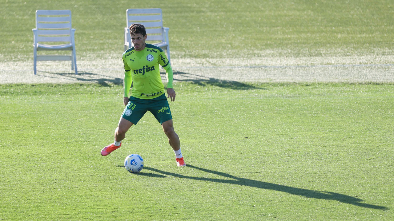 O jogador Raphael Veiga, da SE Palmeiras, durante treinamento, na Academia de Futebol. (Foto: Cesar Greco)