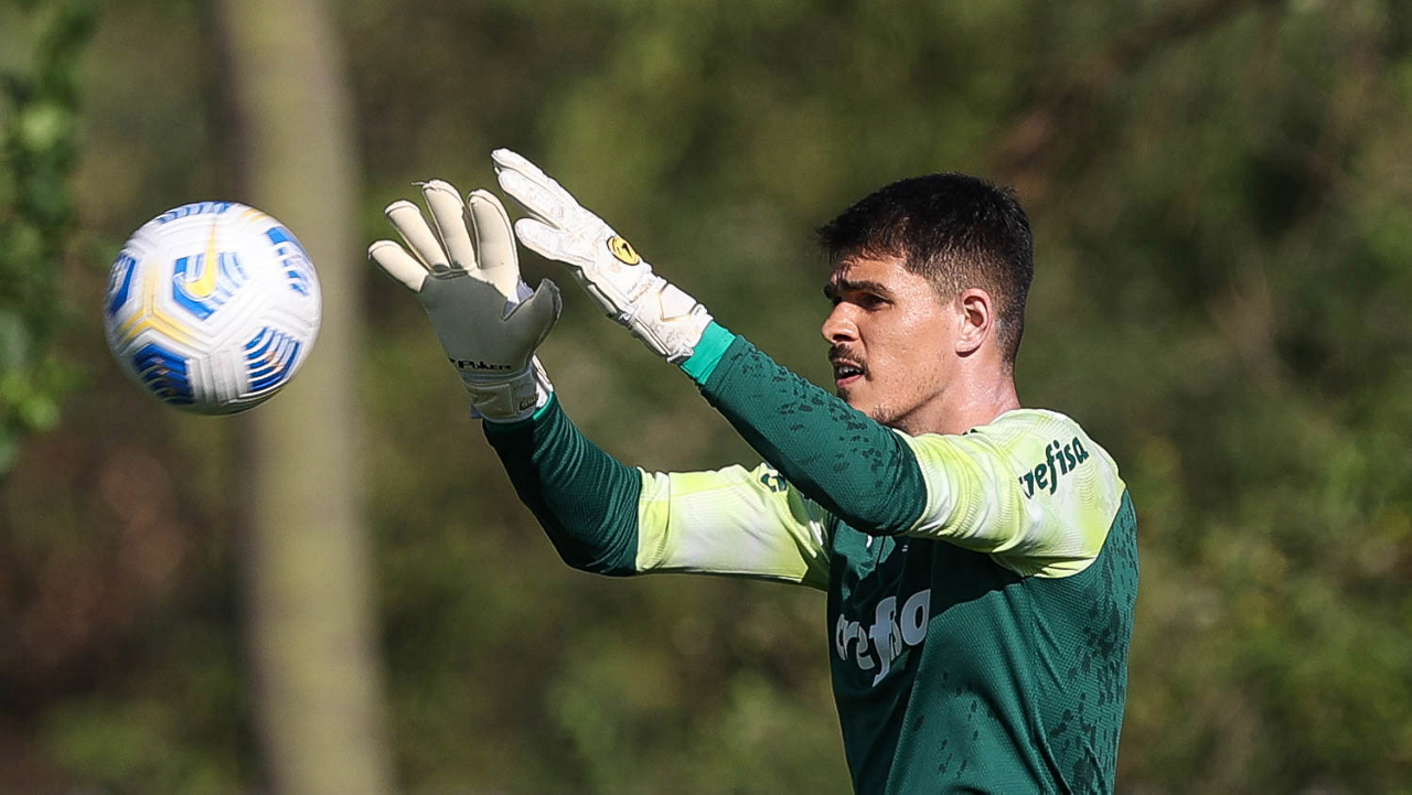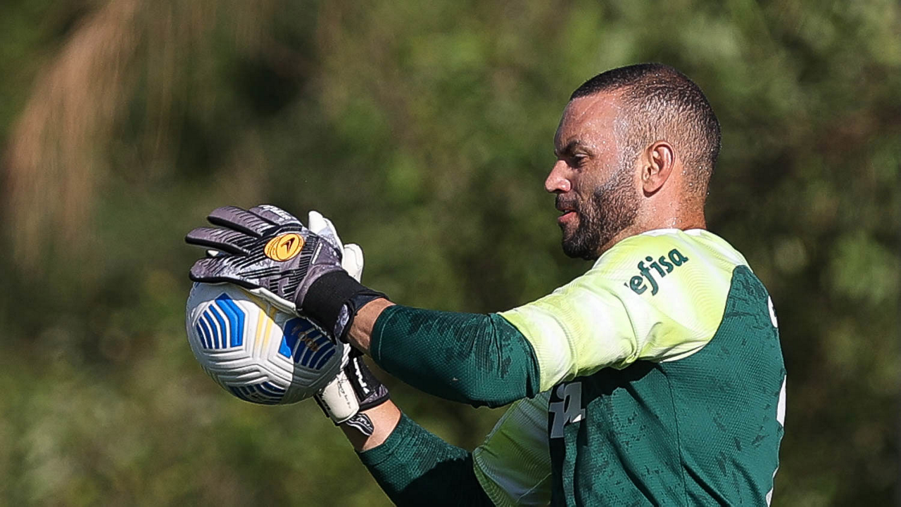 O goleiro Weverton, da SE Palmeiras, durante treinamento, na Academia de Futebol. (Foto: Cesar Greco)