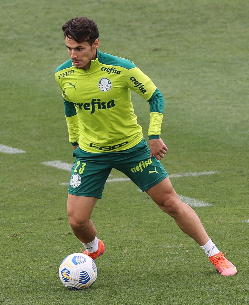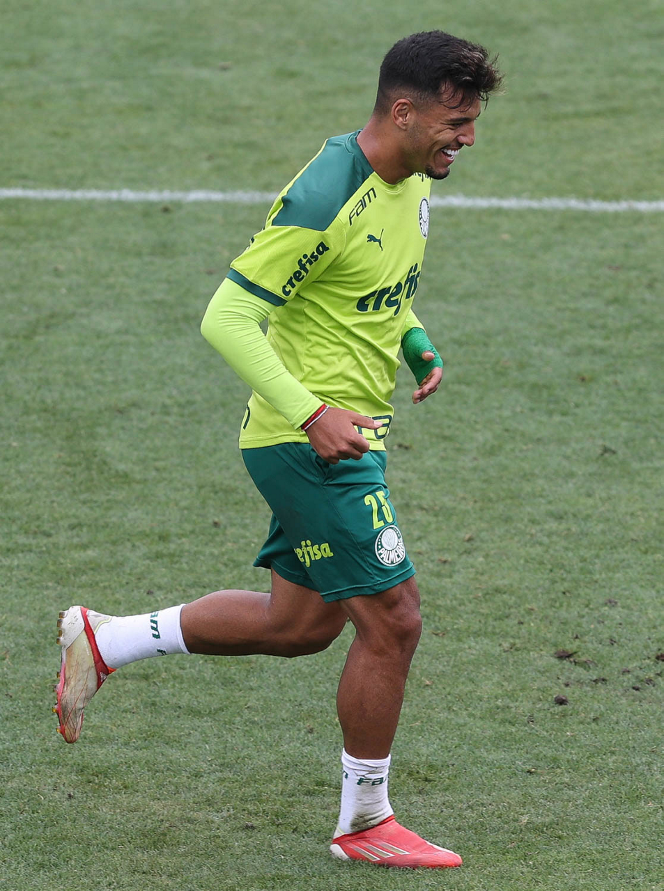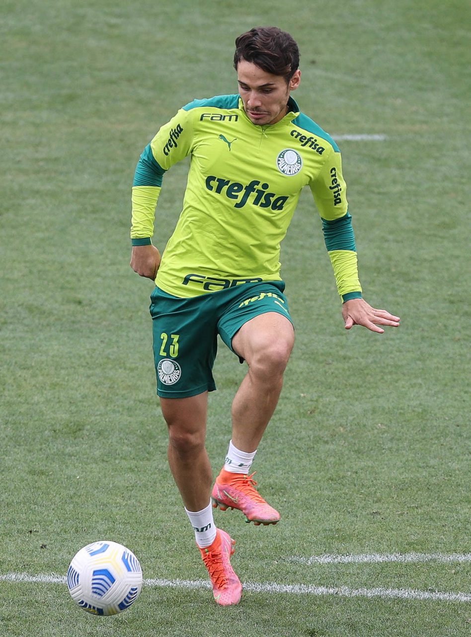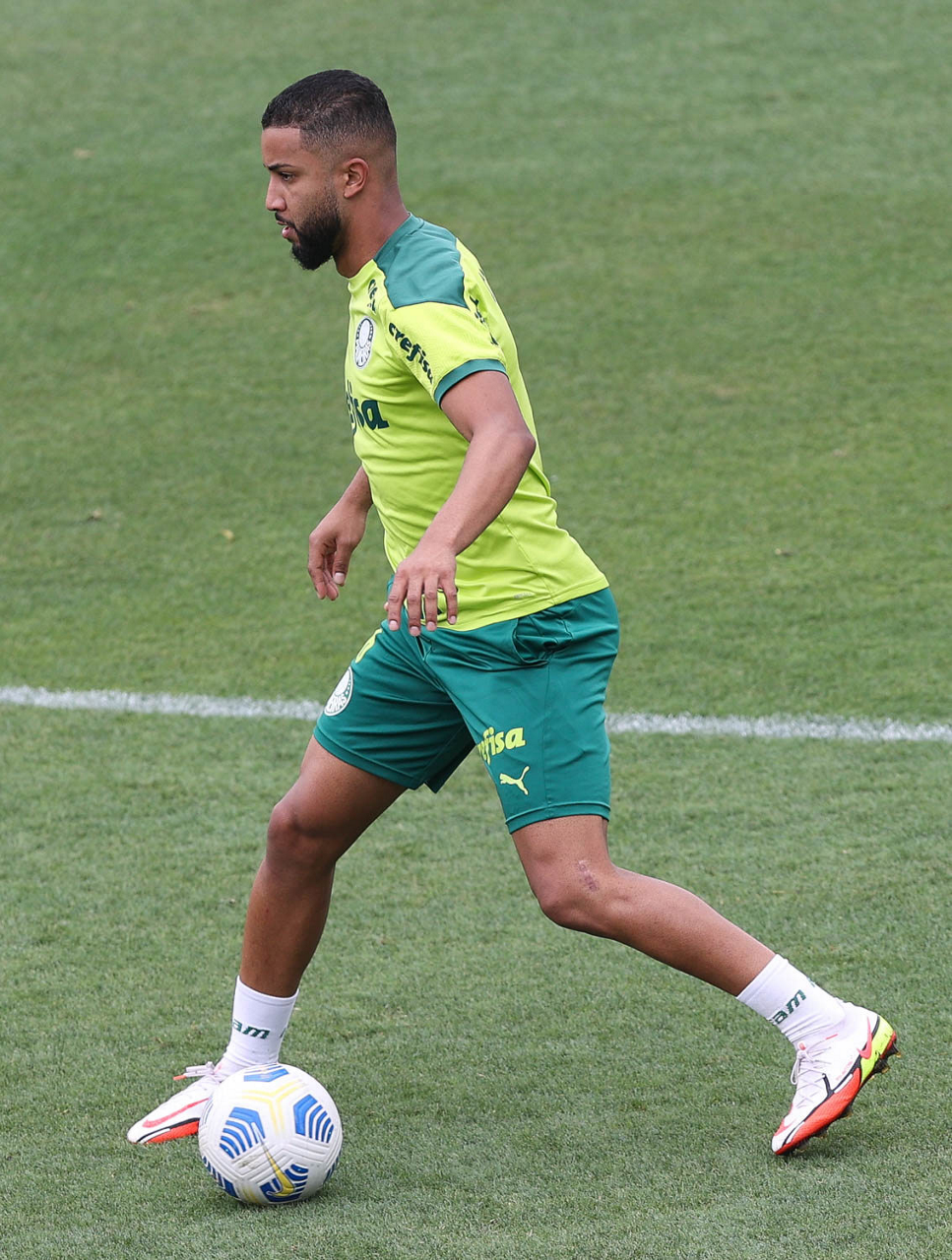 O jogador Raphael Veiga, da SE Palmeiras, durante treinamento, na Academia de Futebol. (Foto: Cesar Greco)