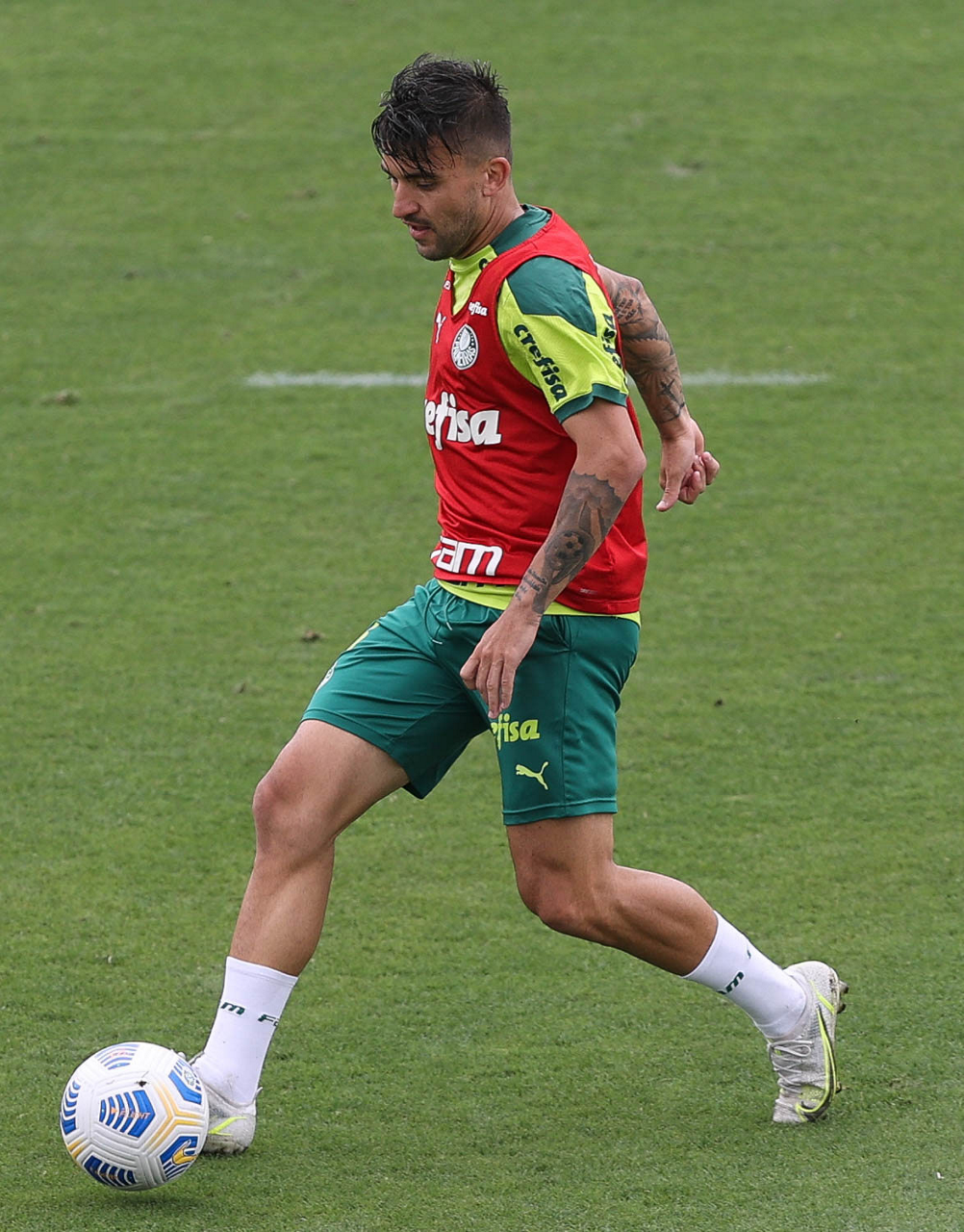 O jogador Gustavo Scarpa, da SE Palmeiras, durante treinamento, na Academia de Futebol. (Foto: Cesar Greco)