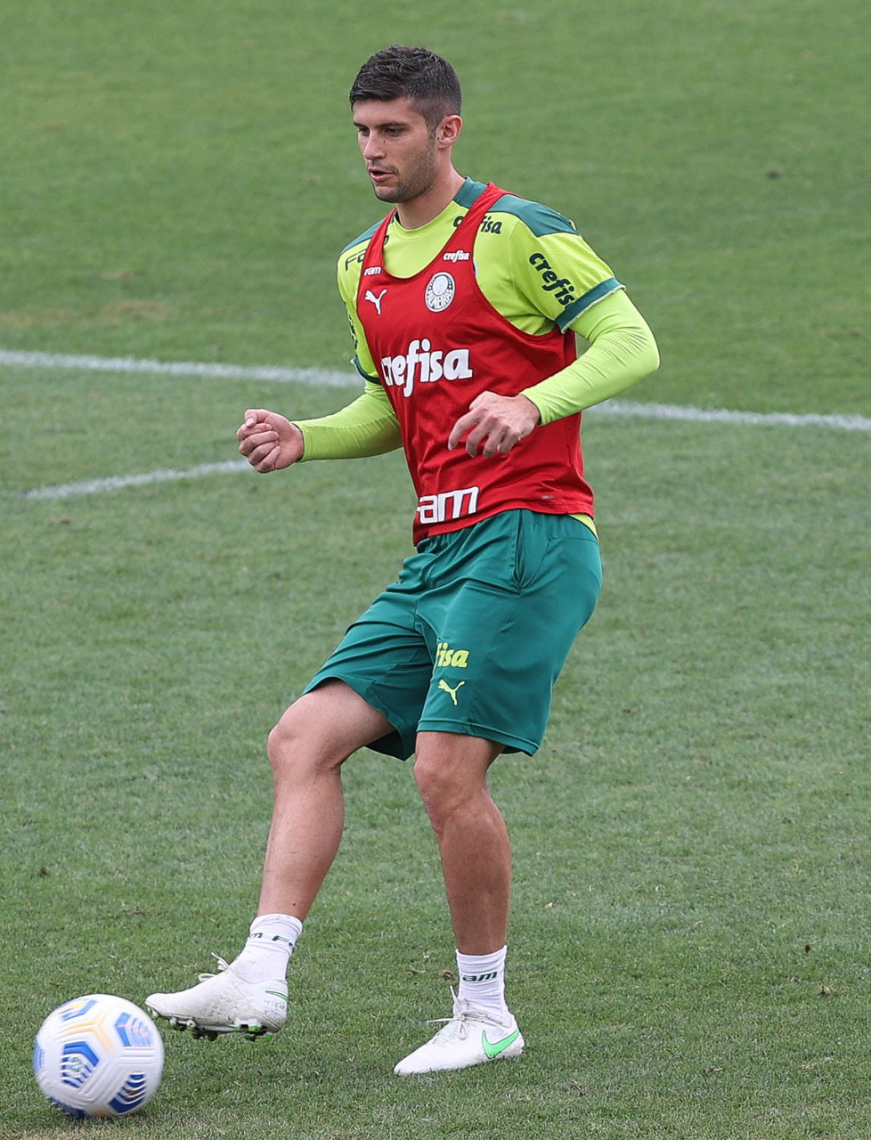 O jogador Benjamín Kuscevic, da SE Palmeiras, durante treinamento, na Academia de Futebol. (Foto: Cesar Greco)