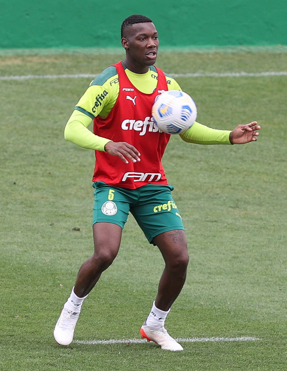 O jogador Gabriel Veron, da SE Palmeiras, durante treinamento, na Academia de Futebol. (Foto: Cesar Greco)