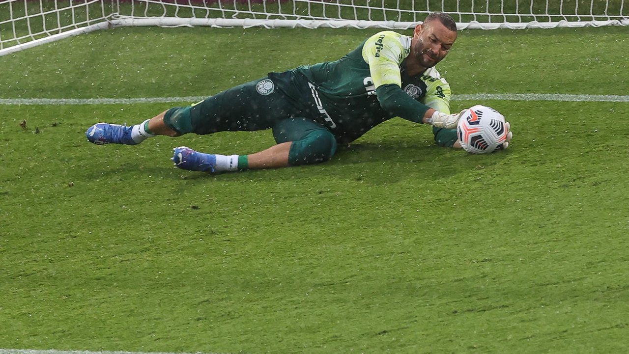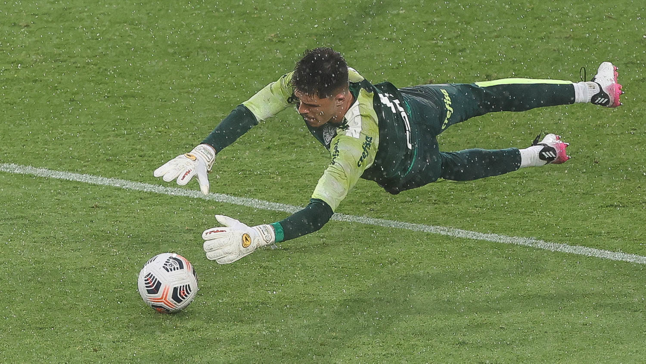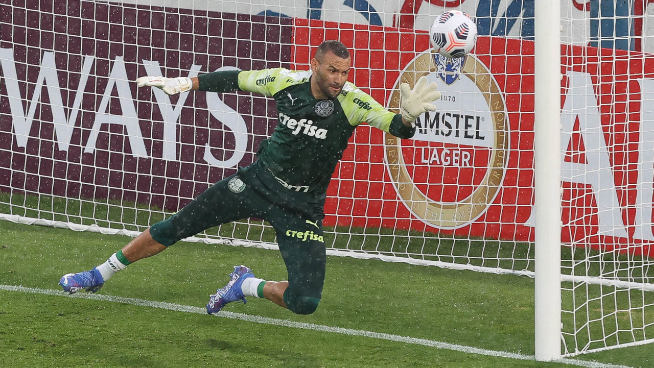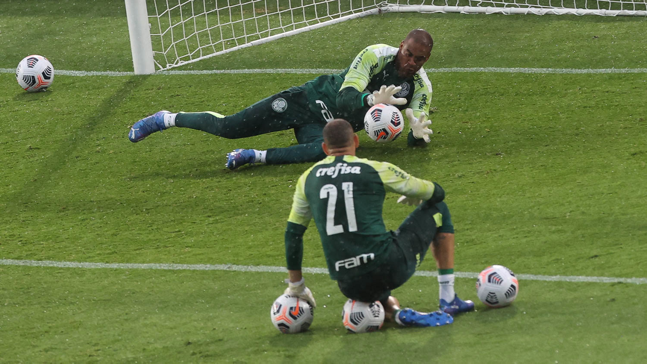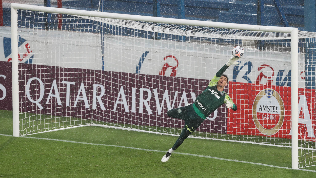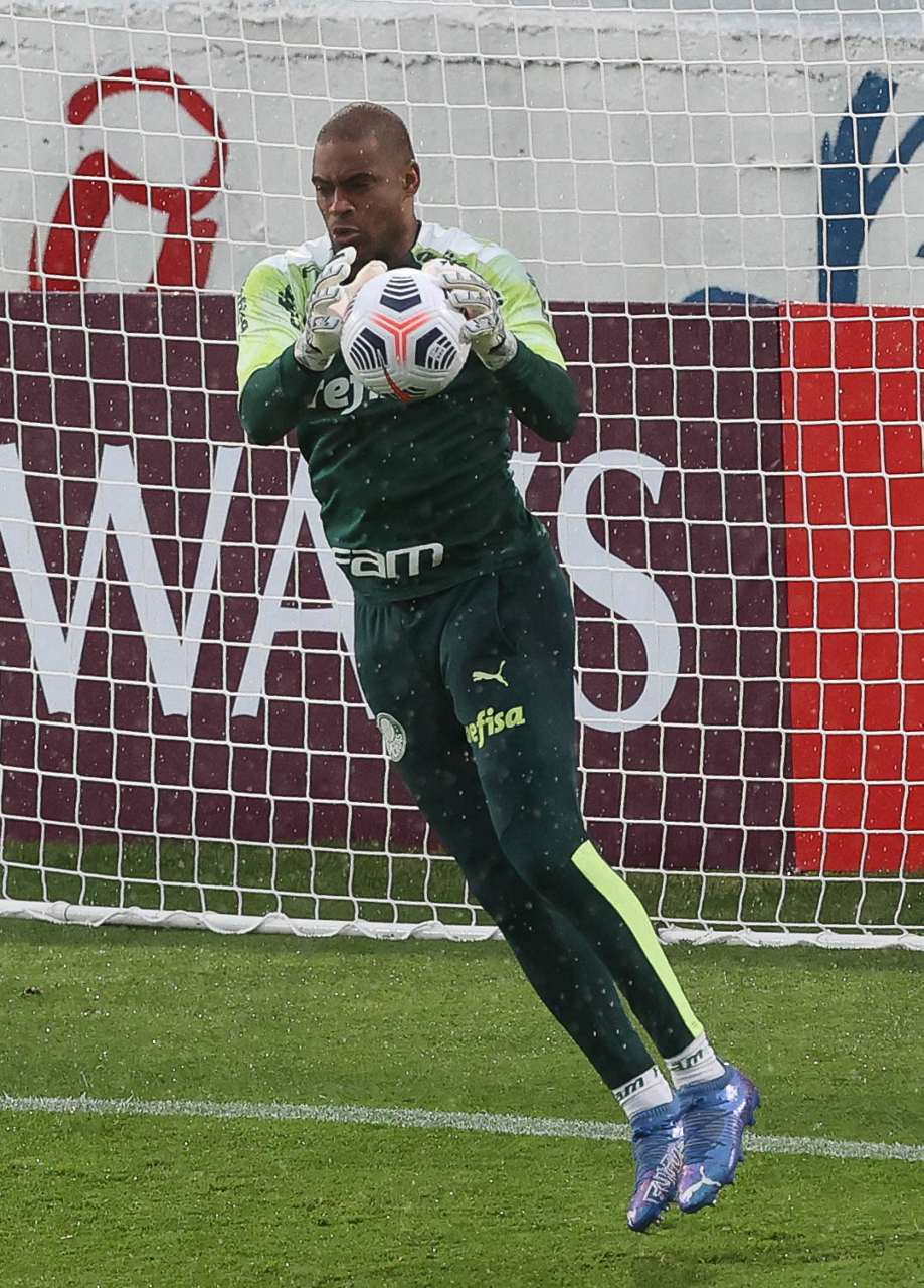 O goleiro Weverton, da SE Palmeiras, durante treinamento, no Estádio Gran Parque Central, em Montevidéu. (Foto: Cesar Greco)