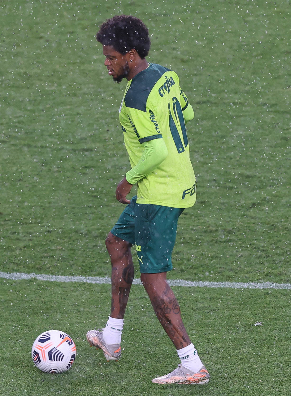 O jogador Luan, da SE Palmeiras, durante treinamento, no Estádio Gran Parque Central, em Montevidéu. (Foto: Cesar Greco)