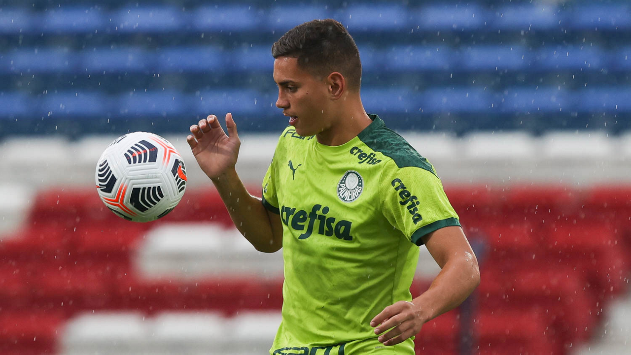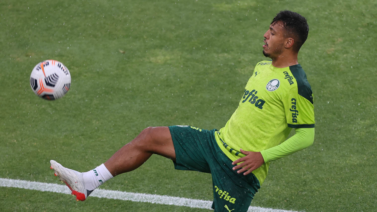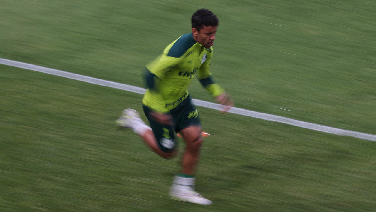 O jogador Gabriel Menino, da SE Palmeiras, durante treinamento, no Estádio Gran Parque Central, em Montevidéu. (Foto: Cesar Greco)