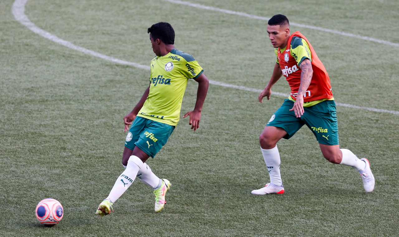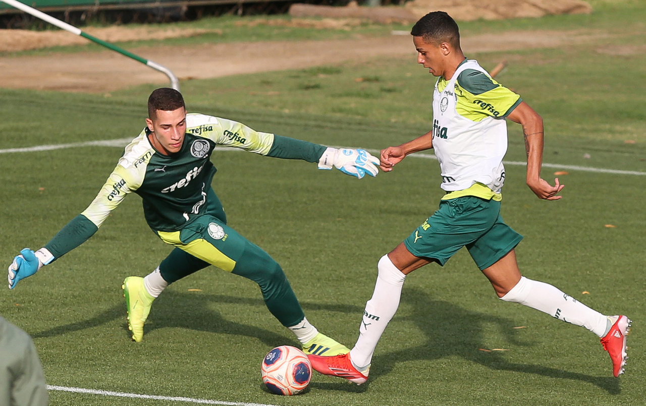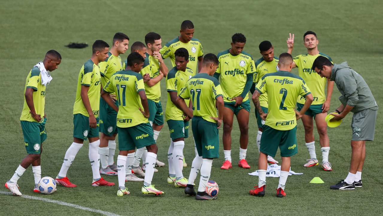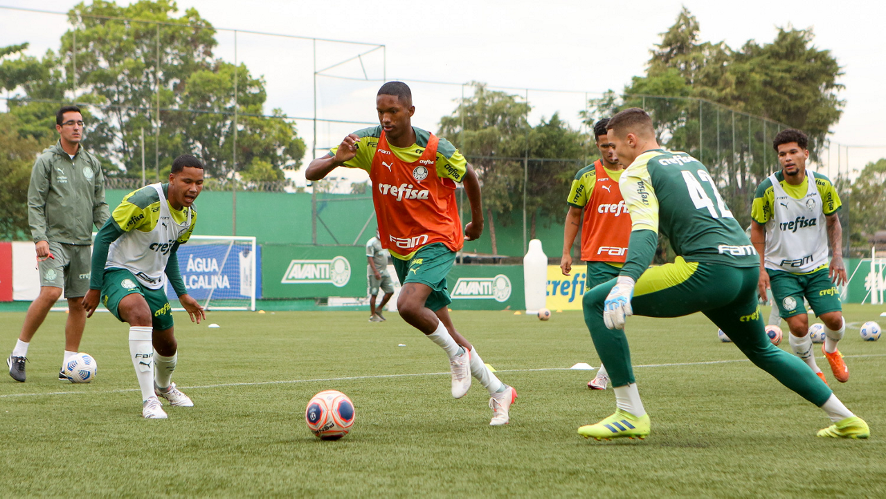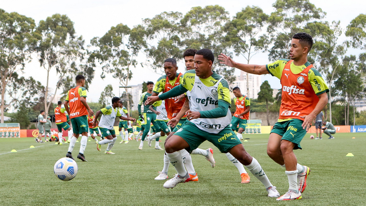 Os atletas da base da SE Palmeiras, durante treinamento para a Copa São Paulo, na Academia de Futebol, em São Paulo-SP. (Foto: Fabio Menotti)