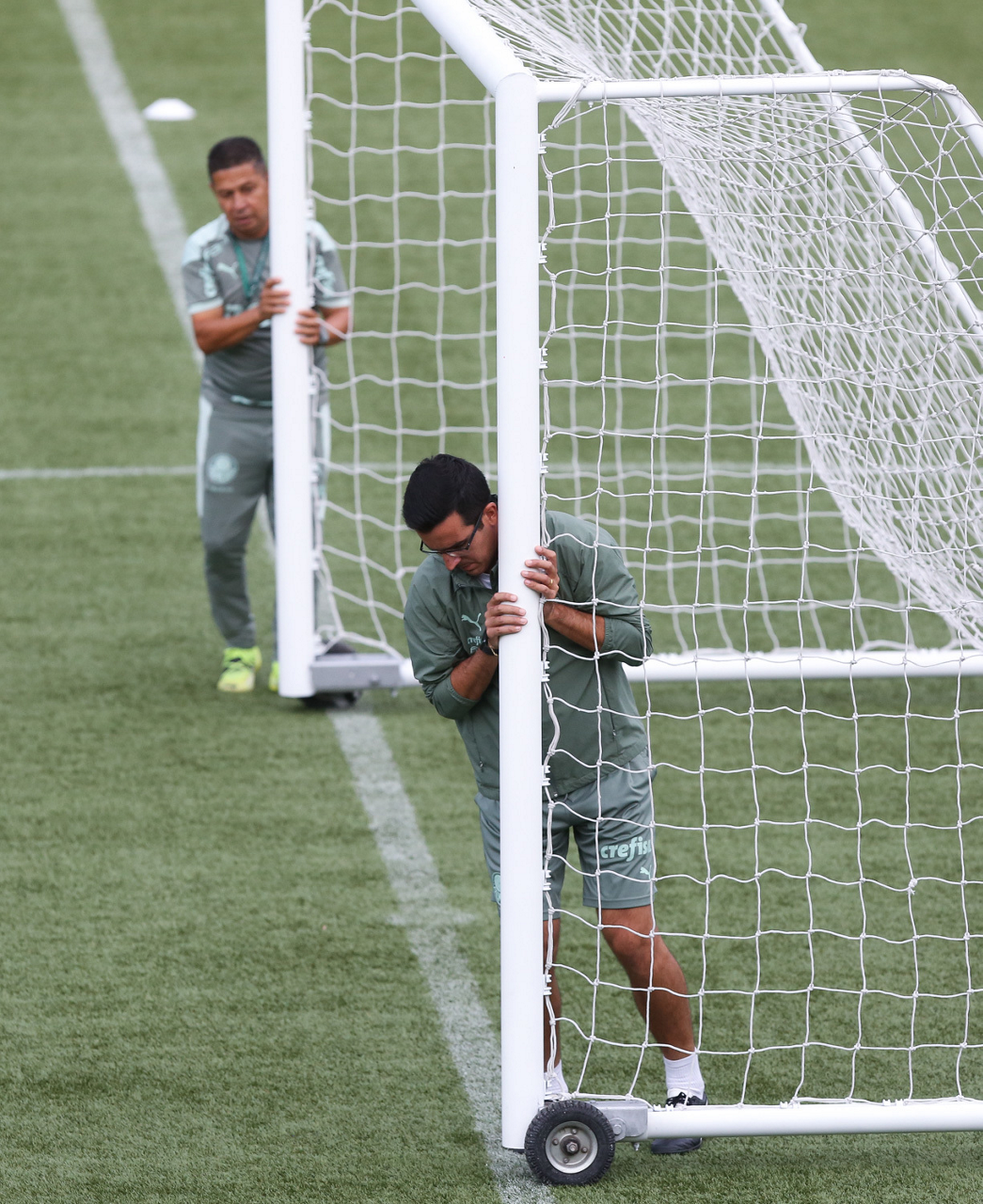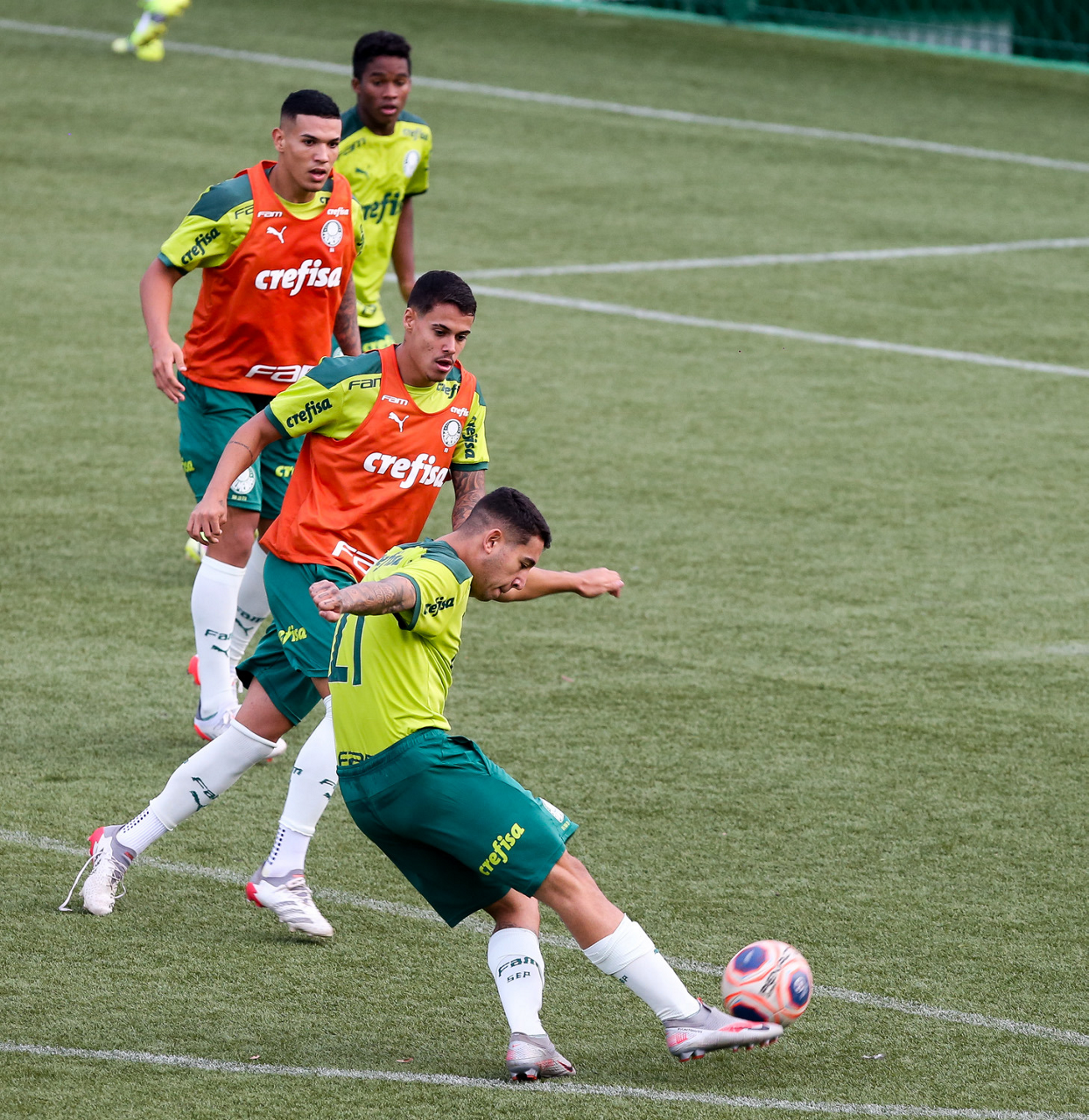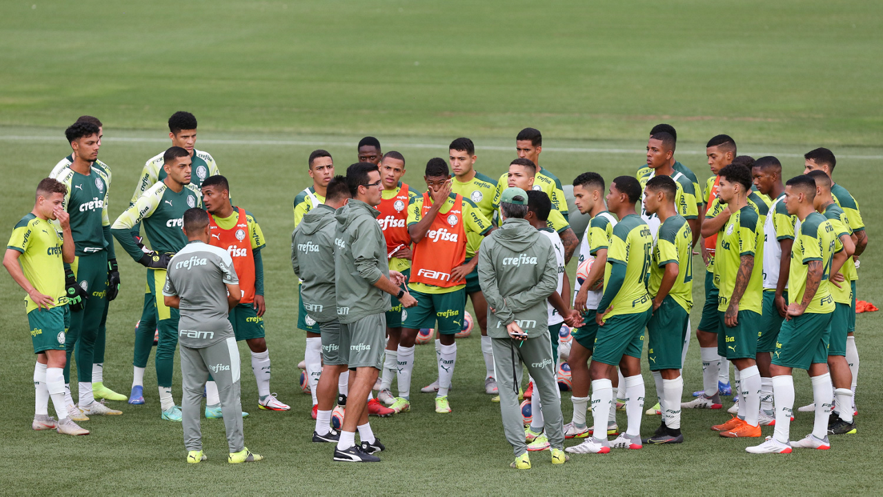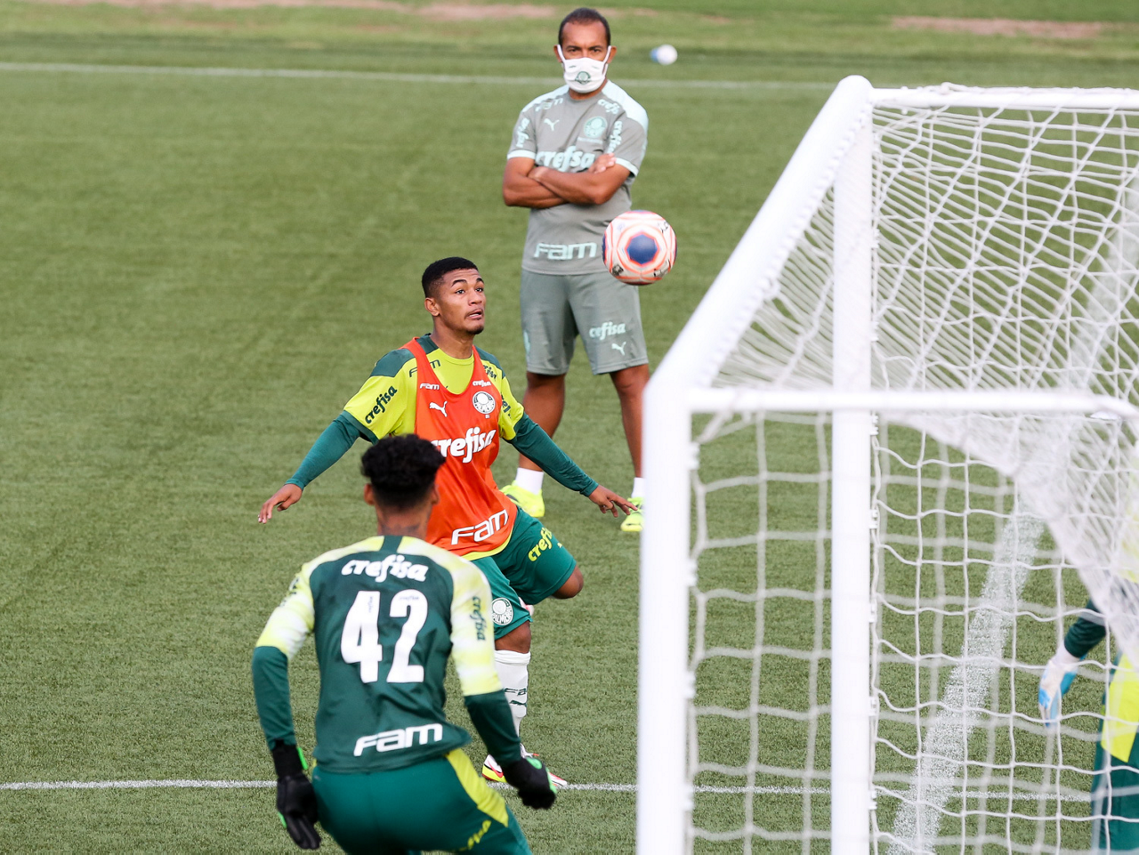 Os atletas da base da SE Palmeiras, durante treinamento para a Copa São Paulo, na Academia de Futebol, em São Paulo-SP. (Foto: Fabio Menotti)