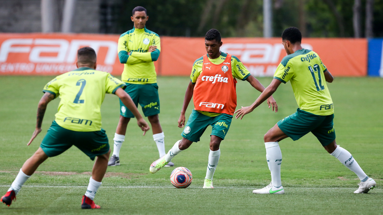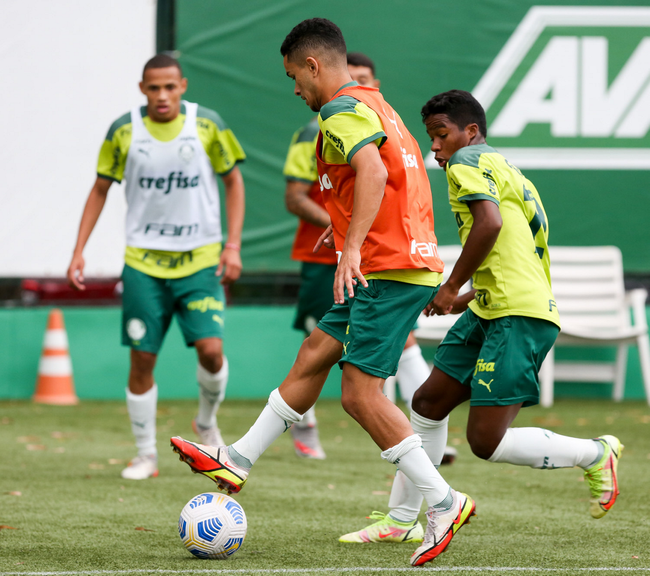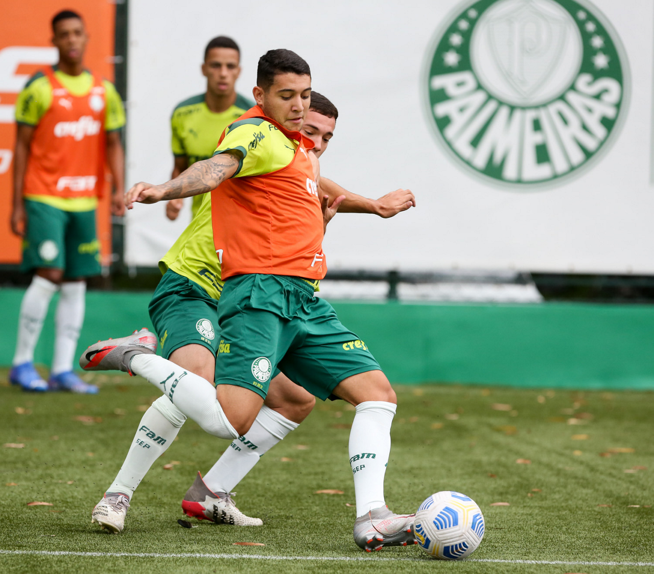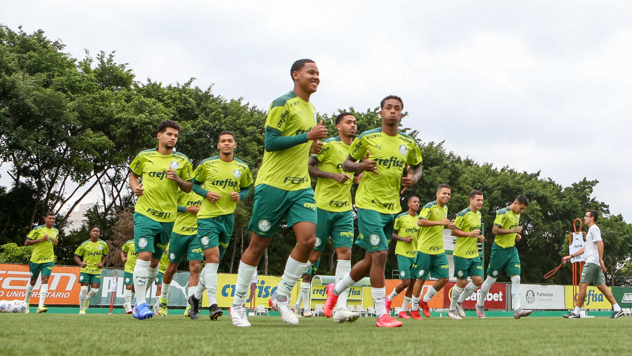 Os atletas da base da SE Palmeiras, durante treinamento para a Copa São Paulo, na Academia de Futebol, em São Paulo-SP. (Foto: Fabio Menotti)