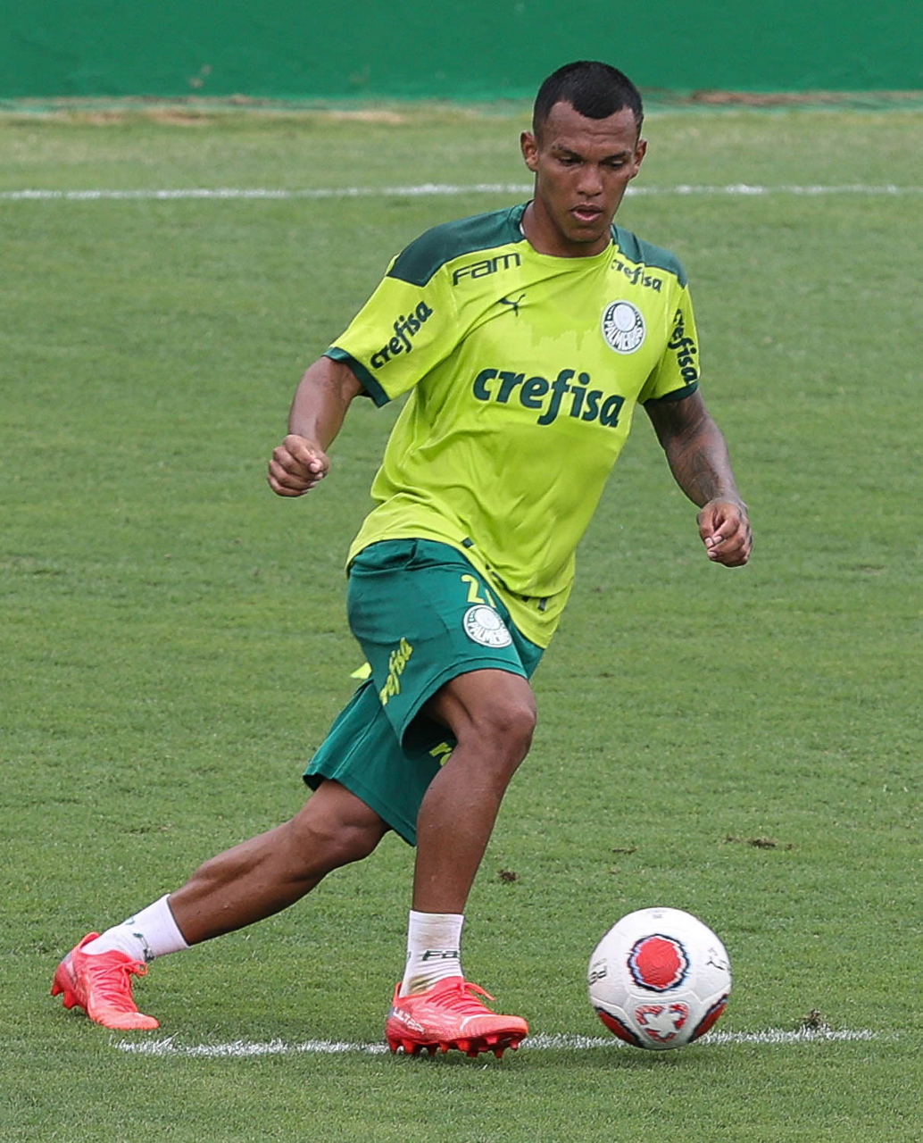 O jogador Eduard Atuesta, da SE Palmeiras, durante treinamento, na Academia de Futebol. (Foto: Cesar Greco)