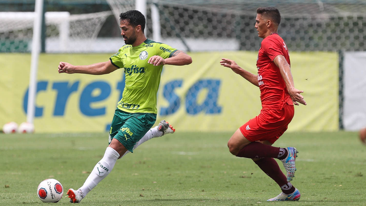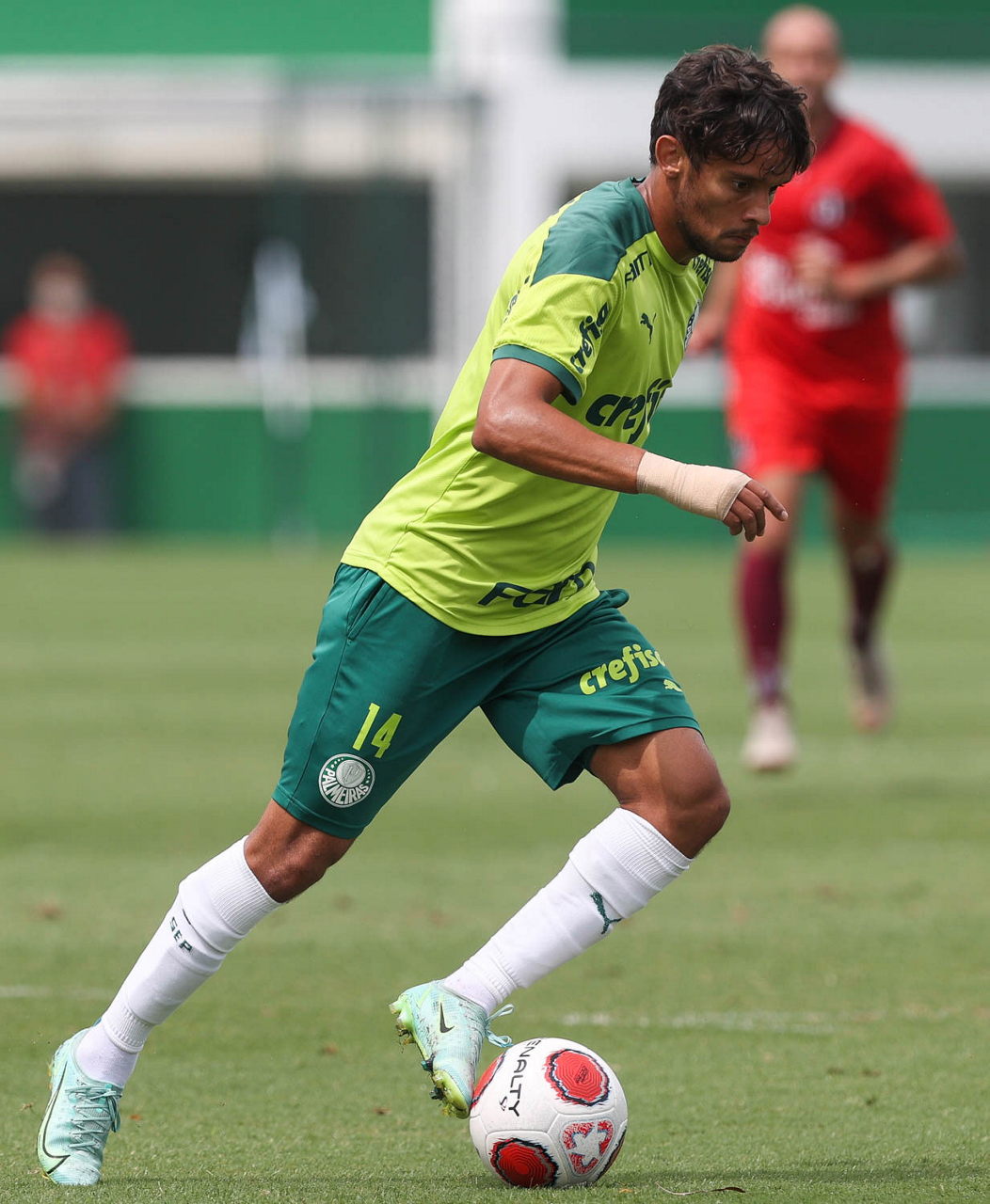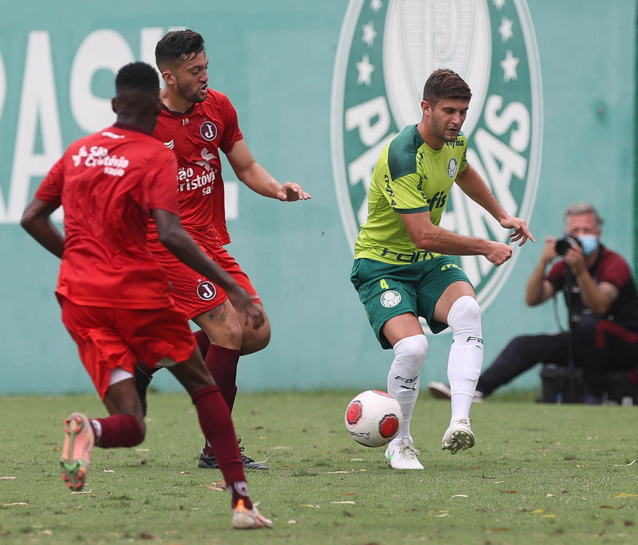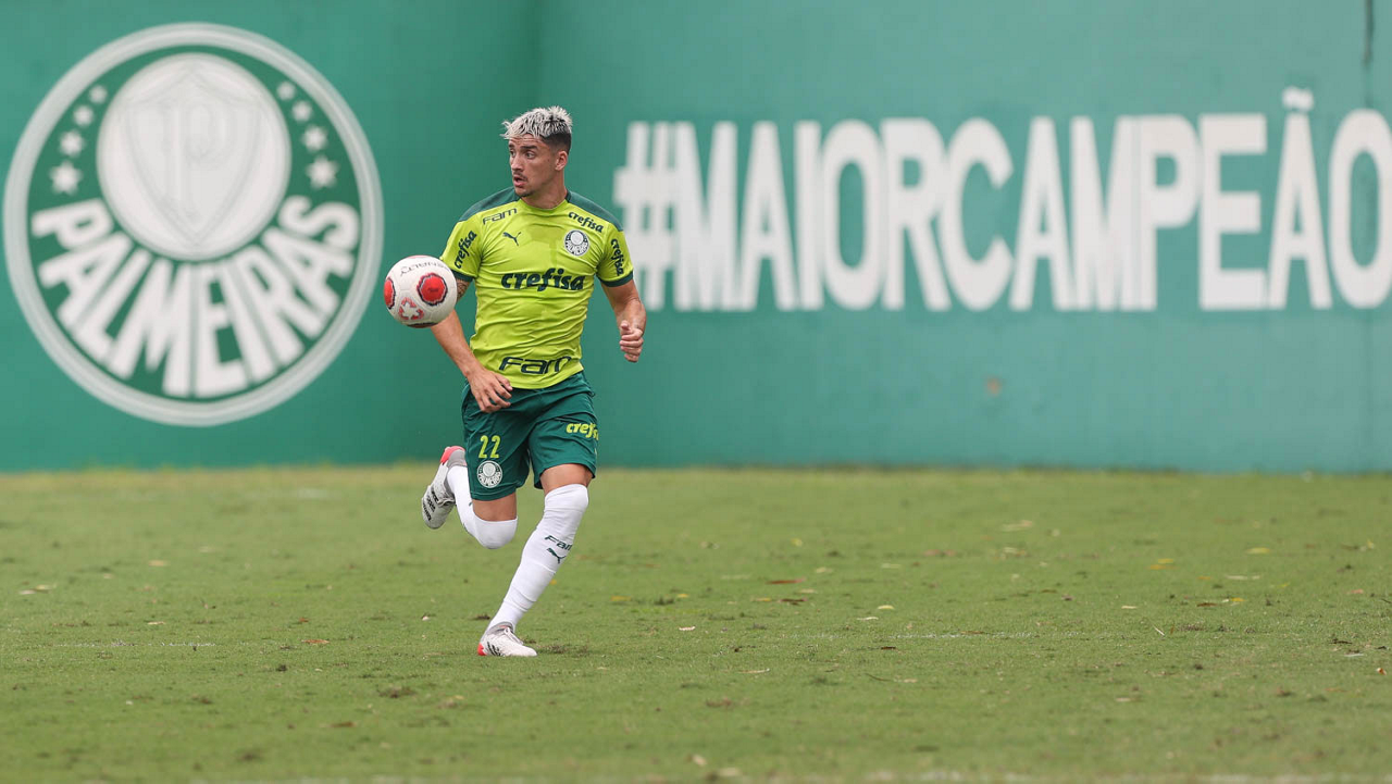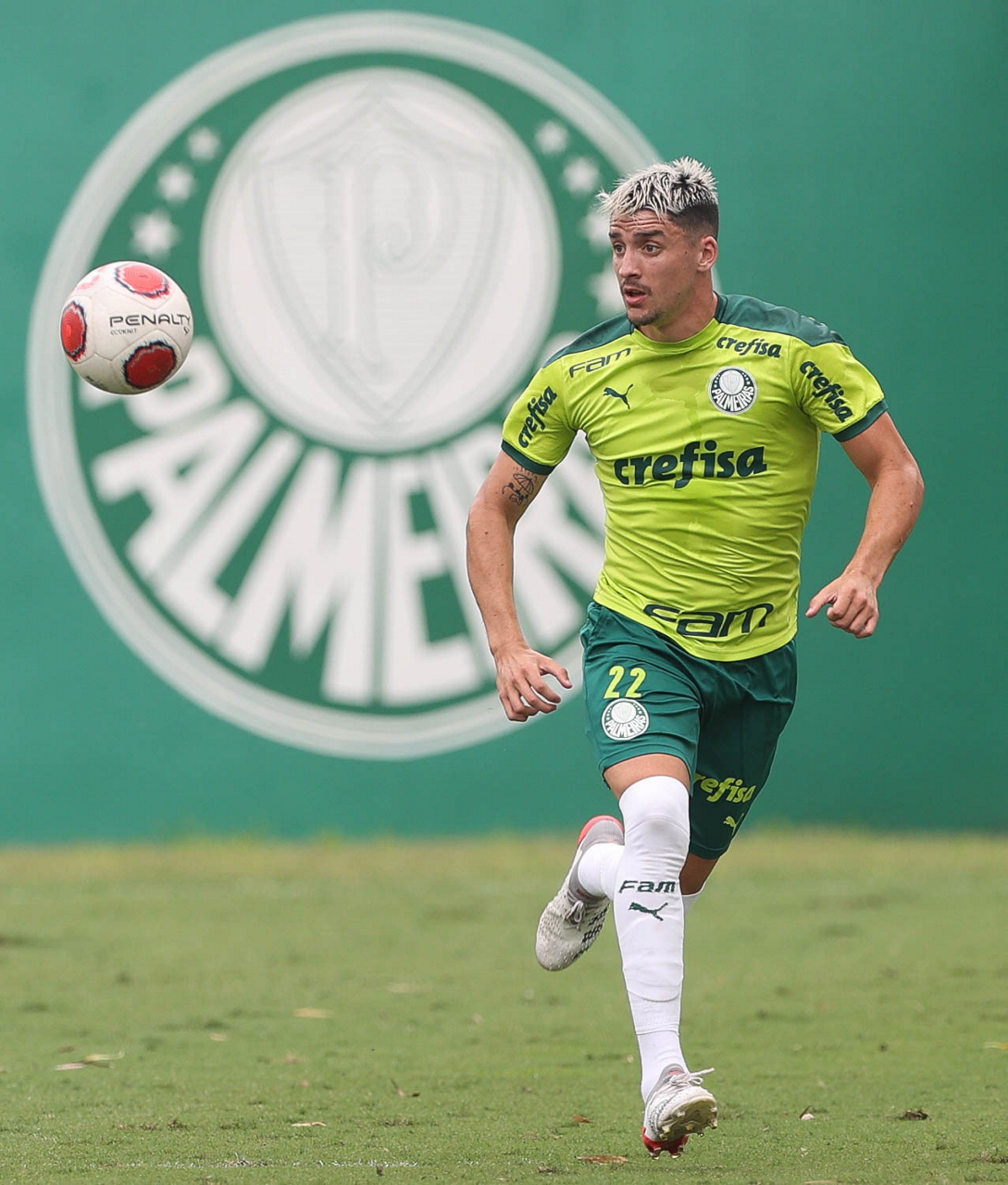 O jogador Joaquín Piquerez, da SE Palmeiras, durante jogo-treino contra a equipe do Juventus, na Academia de Futebol. (Foto: Cesar Greco)