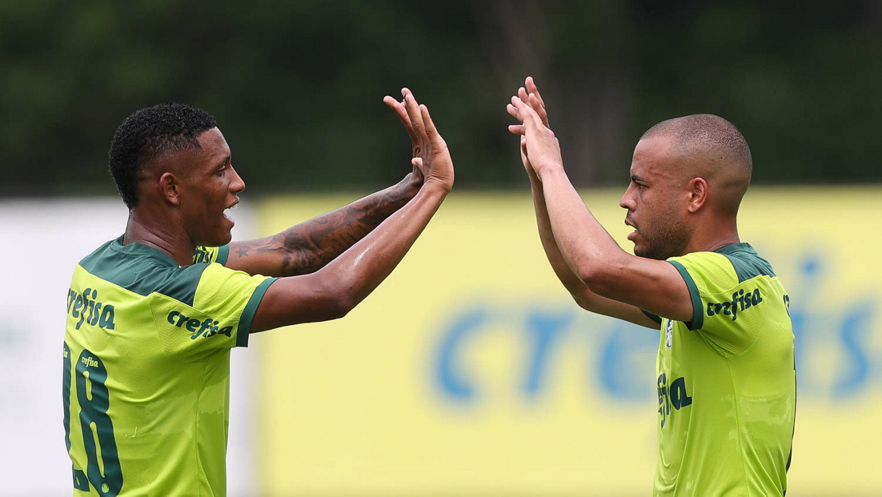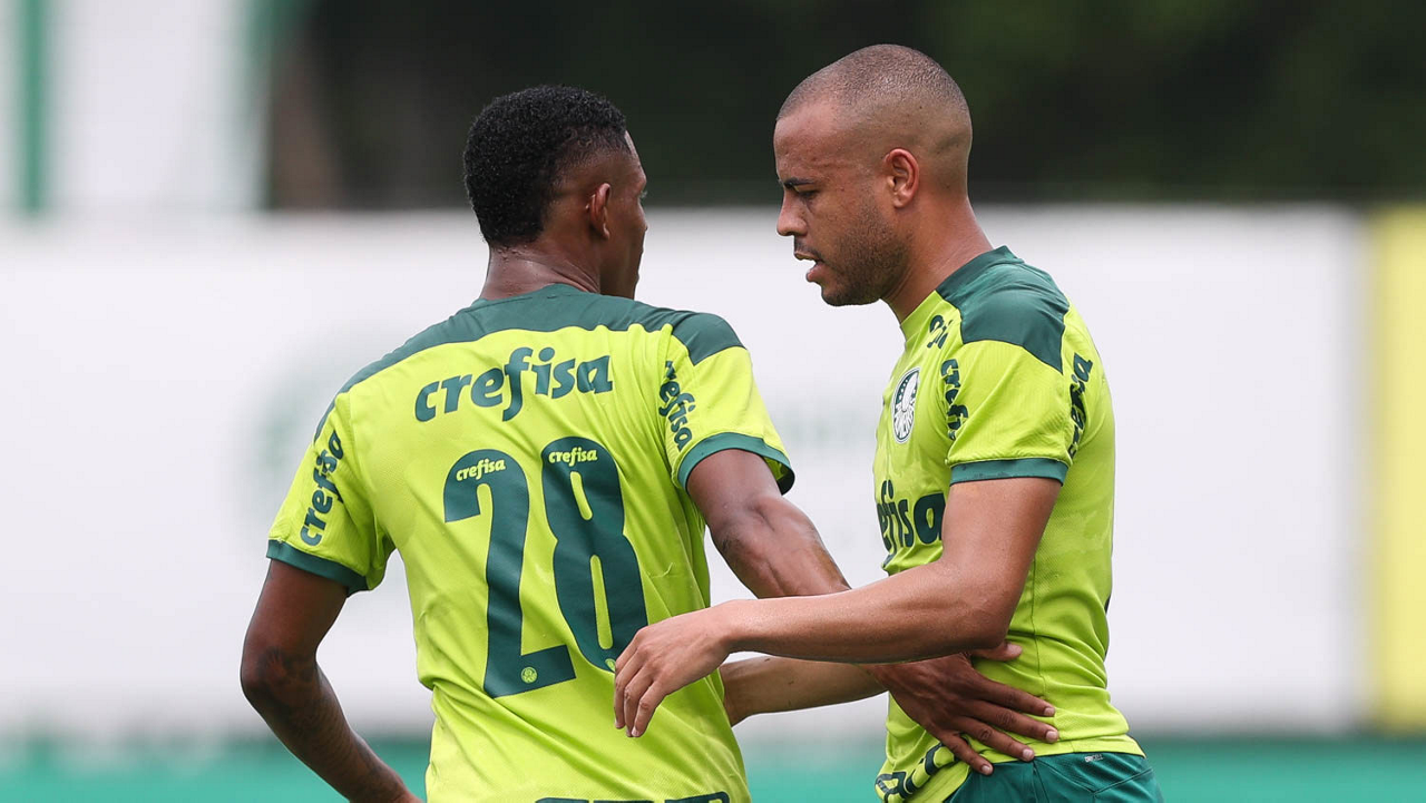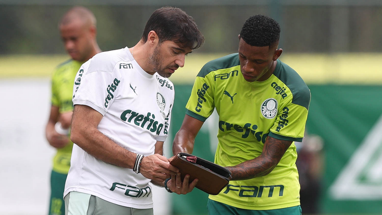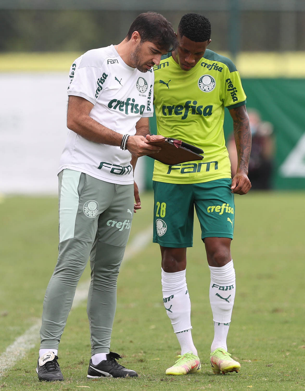 O técnico Abel Ferreira e Danilo (D), da SE Palmeiras, durante jogo-treino contra a equipe do Juventus, na Academia de Futebol. (Foto: Cesar Greco)