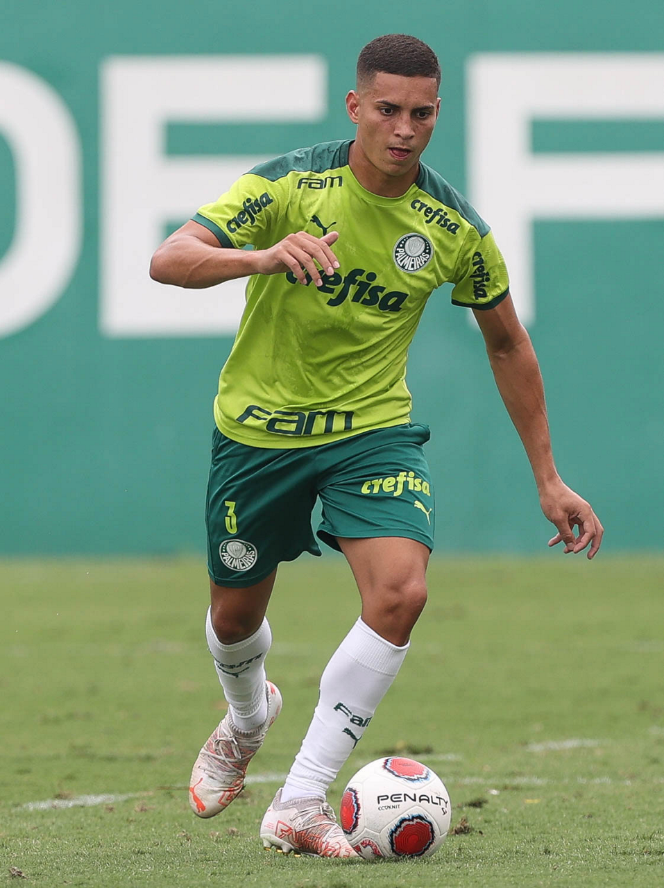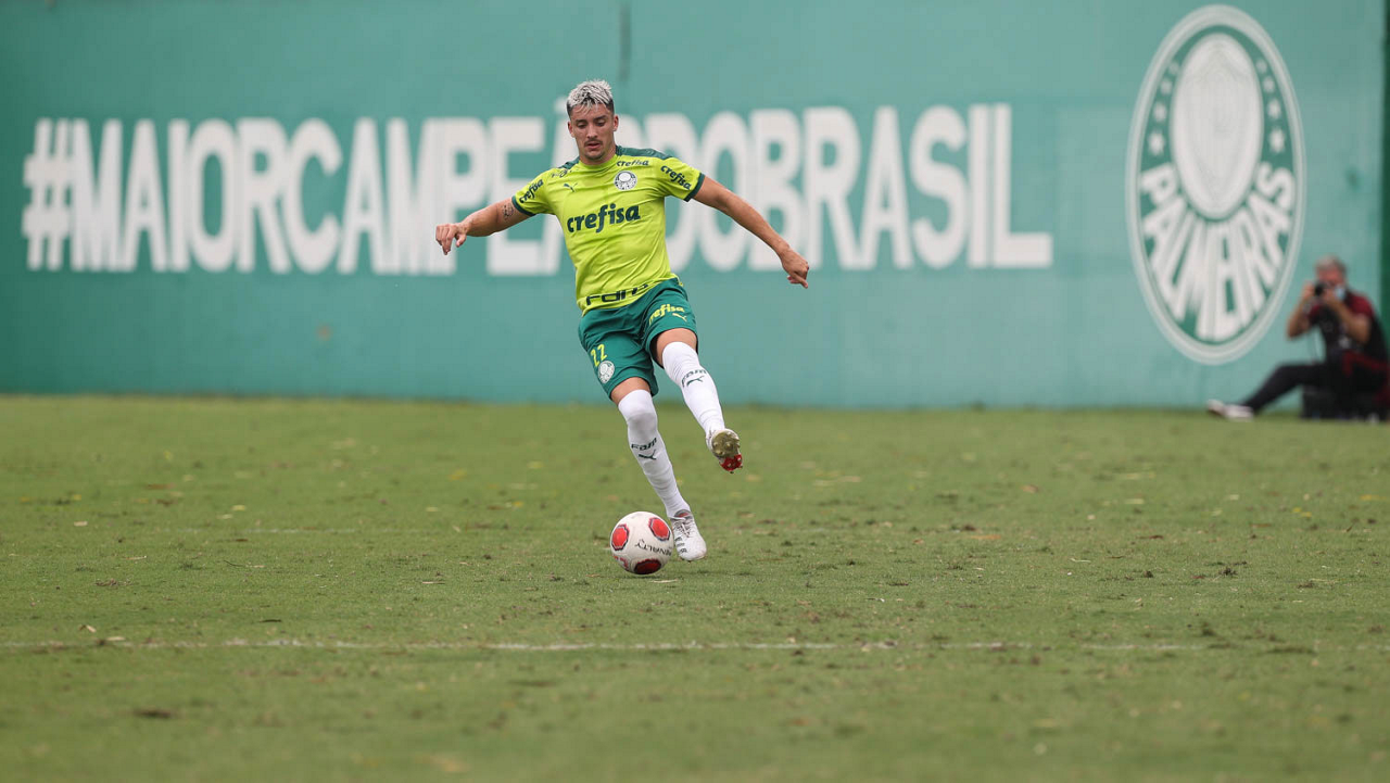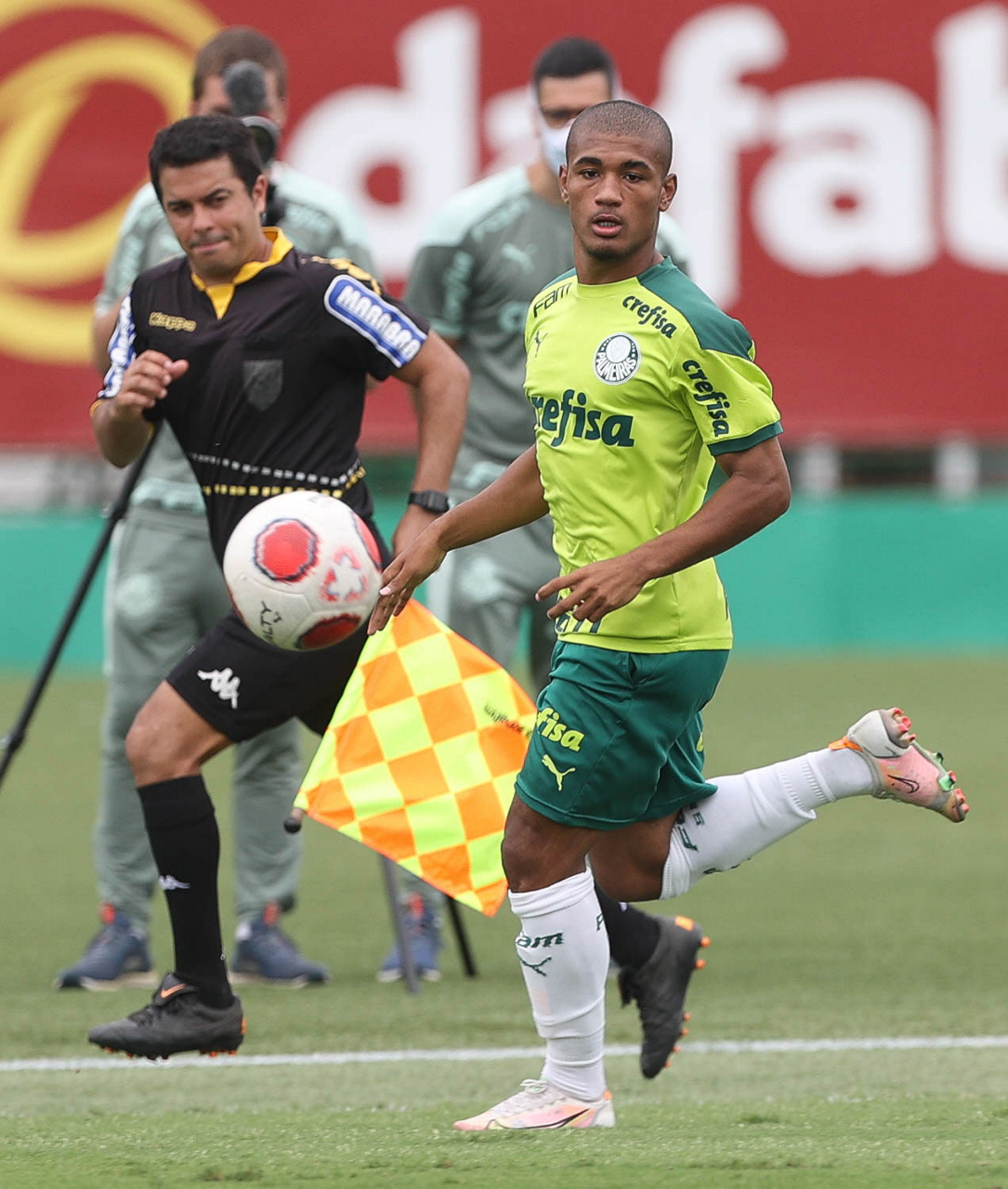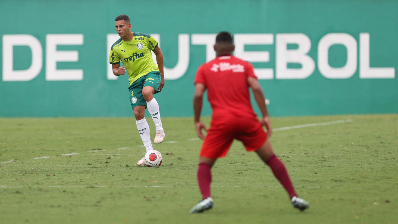 O jogador Gabriel Menino, da SE Palmeiras, durante jogo-treino contra a equipe do Juventus, na Academia de Futebol. (Foto: Cesar Greco)